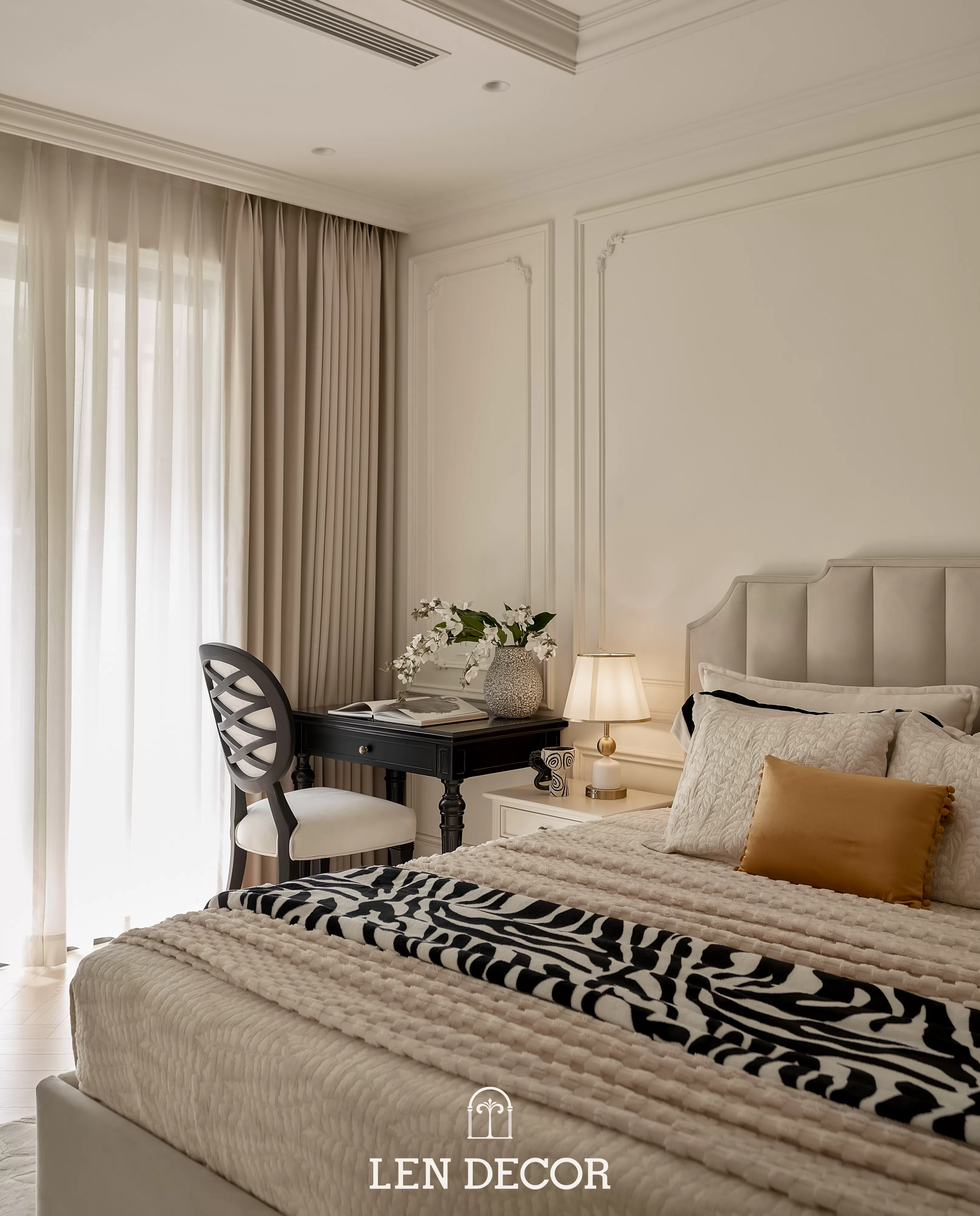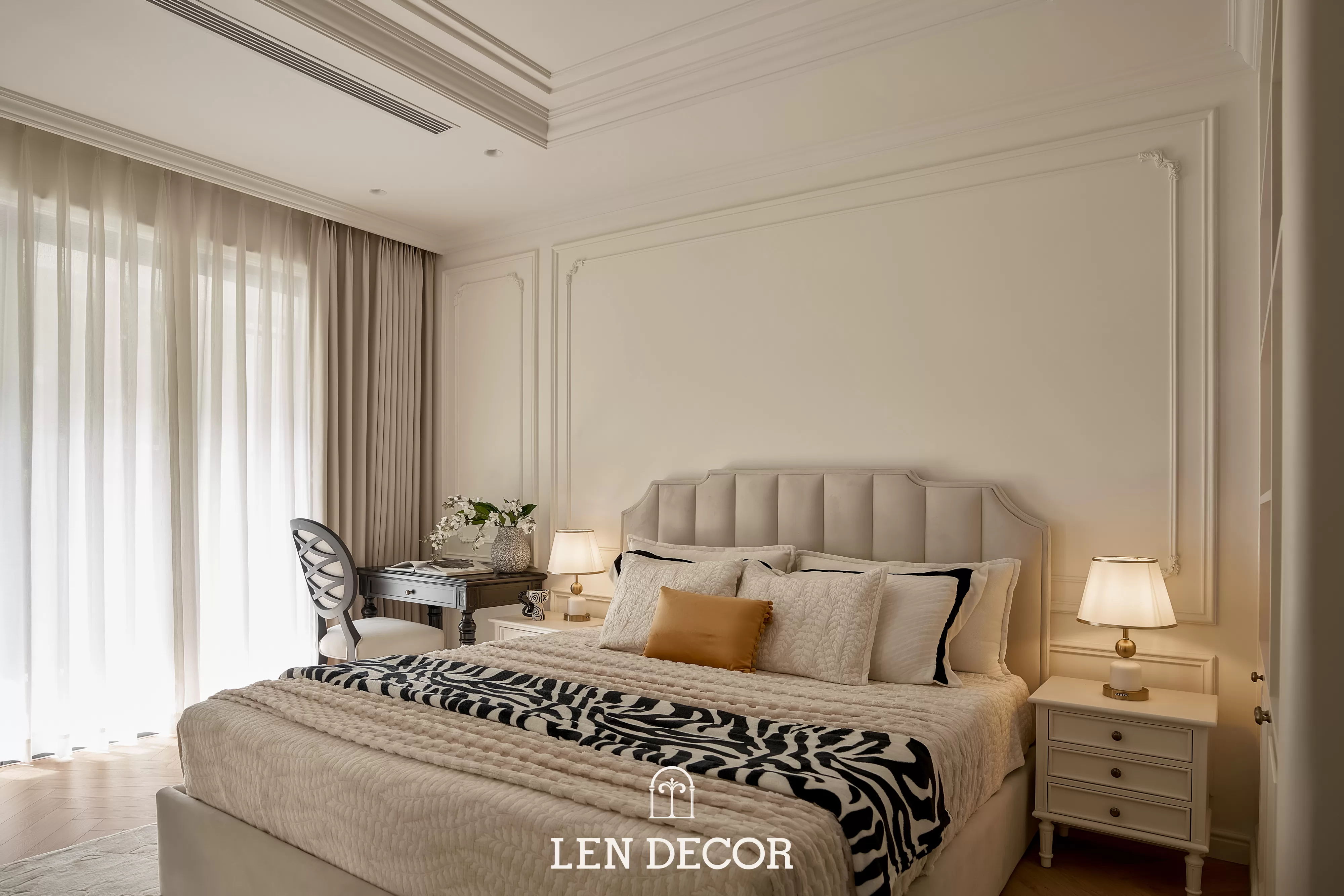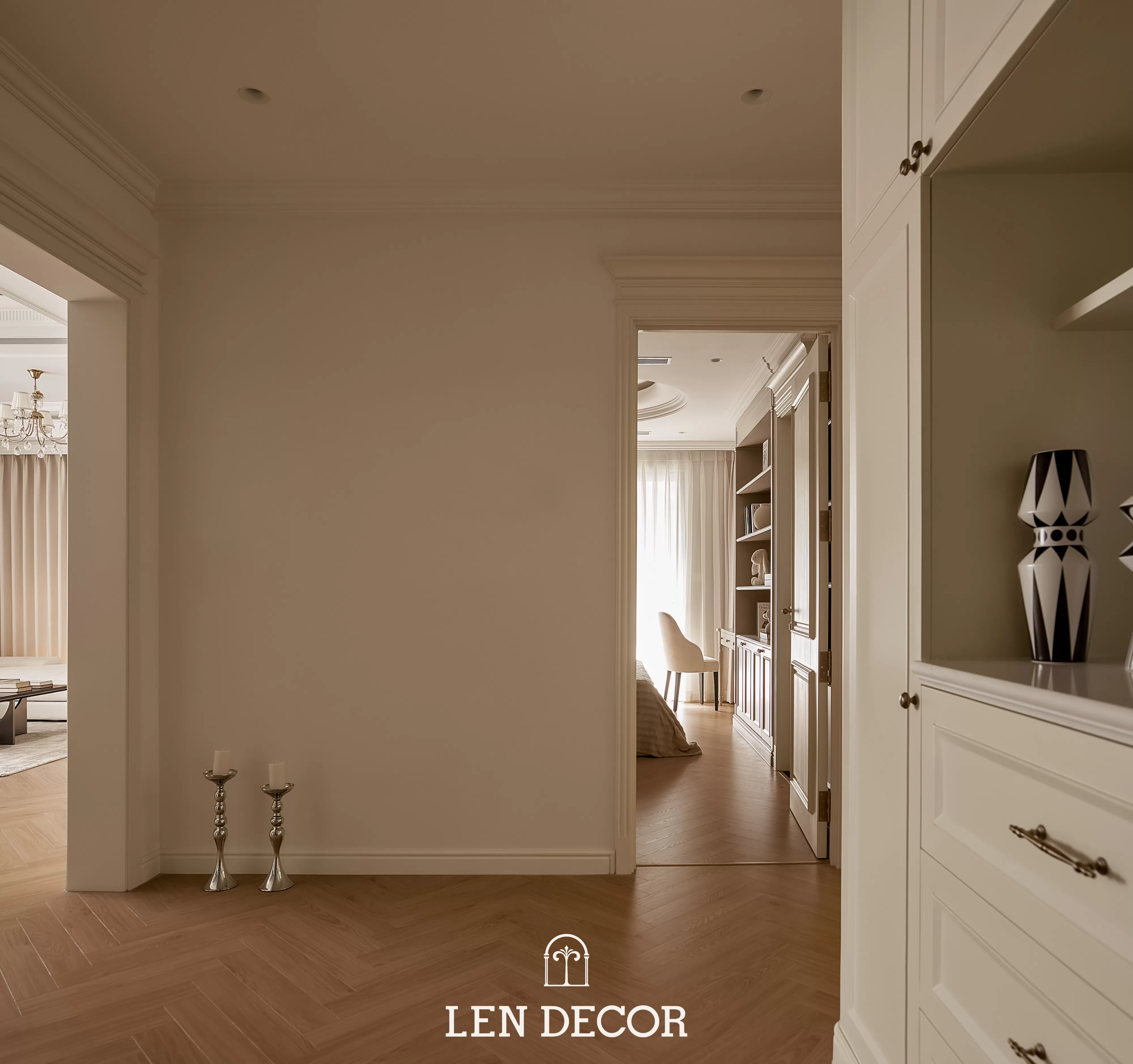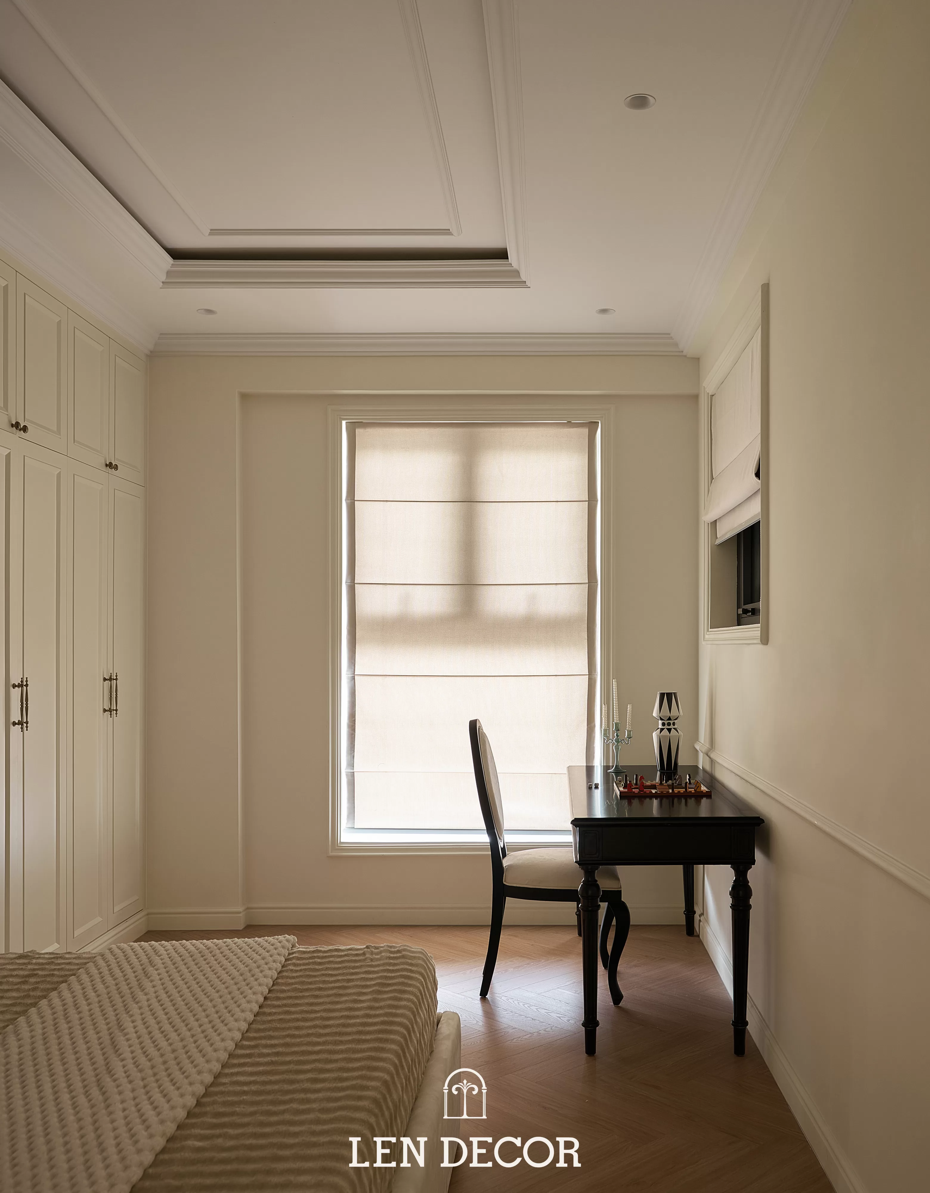 Căn hộ tại 𝑪𝒆𝒍𝒂𝒅𝒐𝒏 𝑪𝒊𝒕𝒚 sẽ đón chào gia chủ bằng sắc cream white nhã nhặn và hệ cửa kính lớn, khéo léo đưa ánh nắng vào làm bừng sáng không gian. Cộng hưởng với ánh sáng, những đường chỉ mảnh trên tường hay trần giật cấp nhẹ nhàng trở thành điểm nhấn, tạo thêm chiều sâu và sự sang trọng cho tổng thể.
