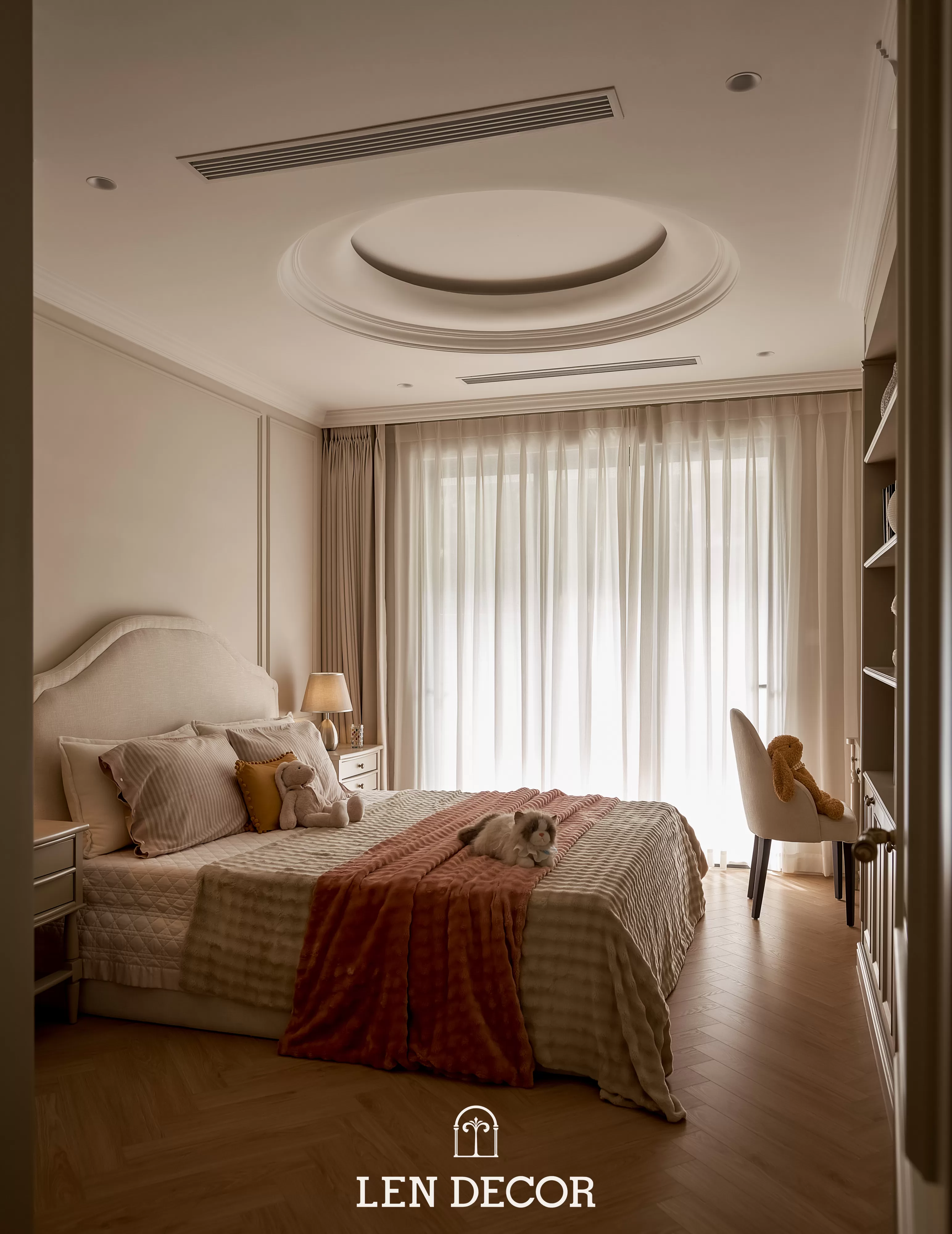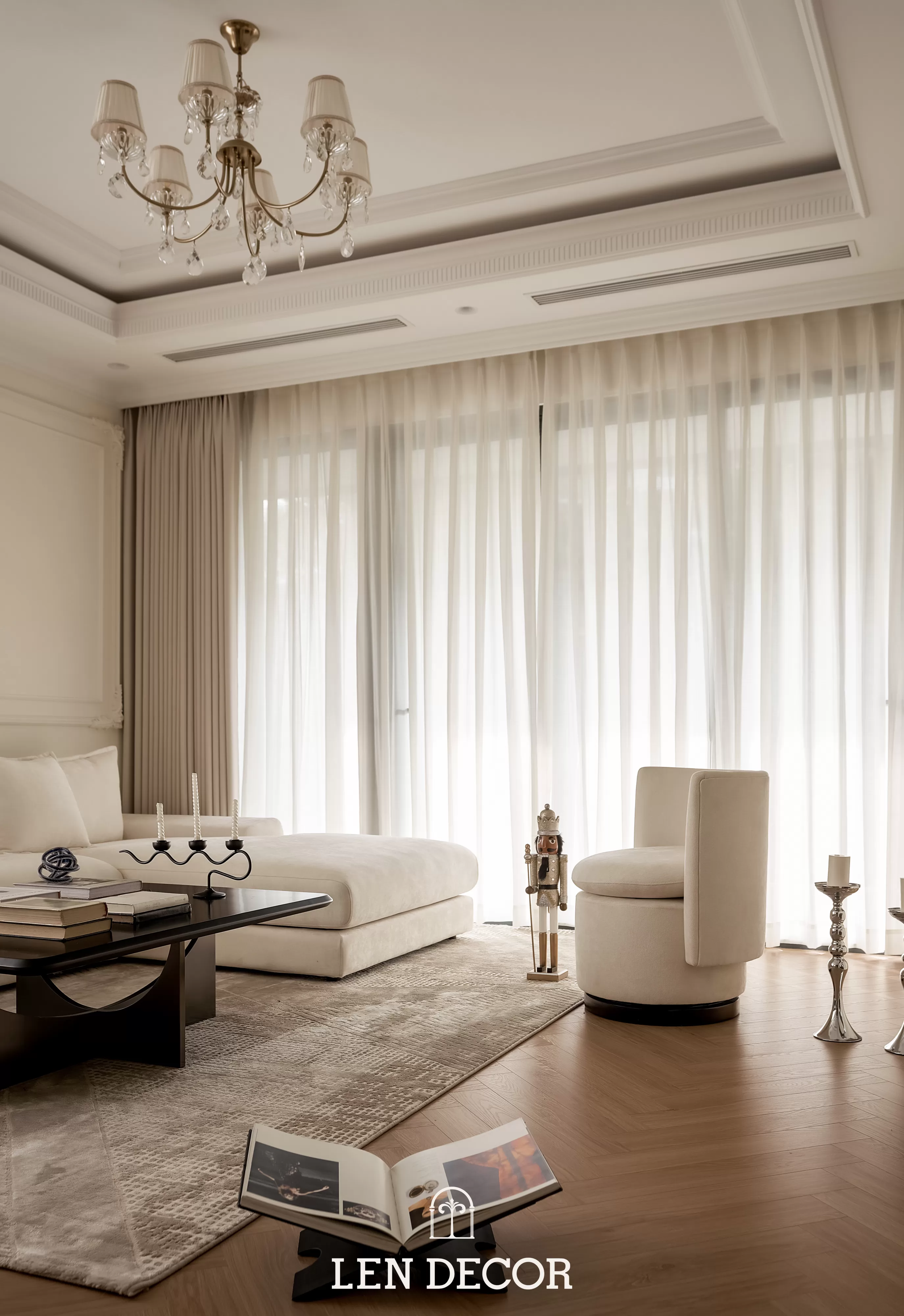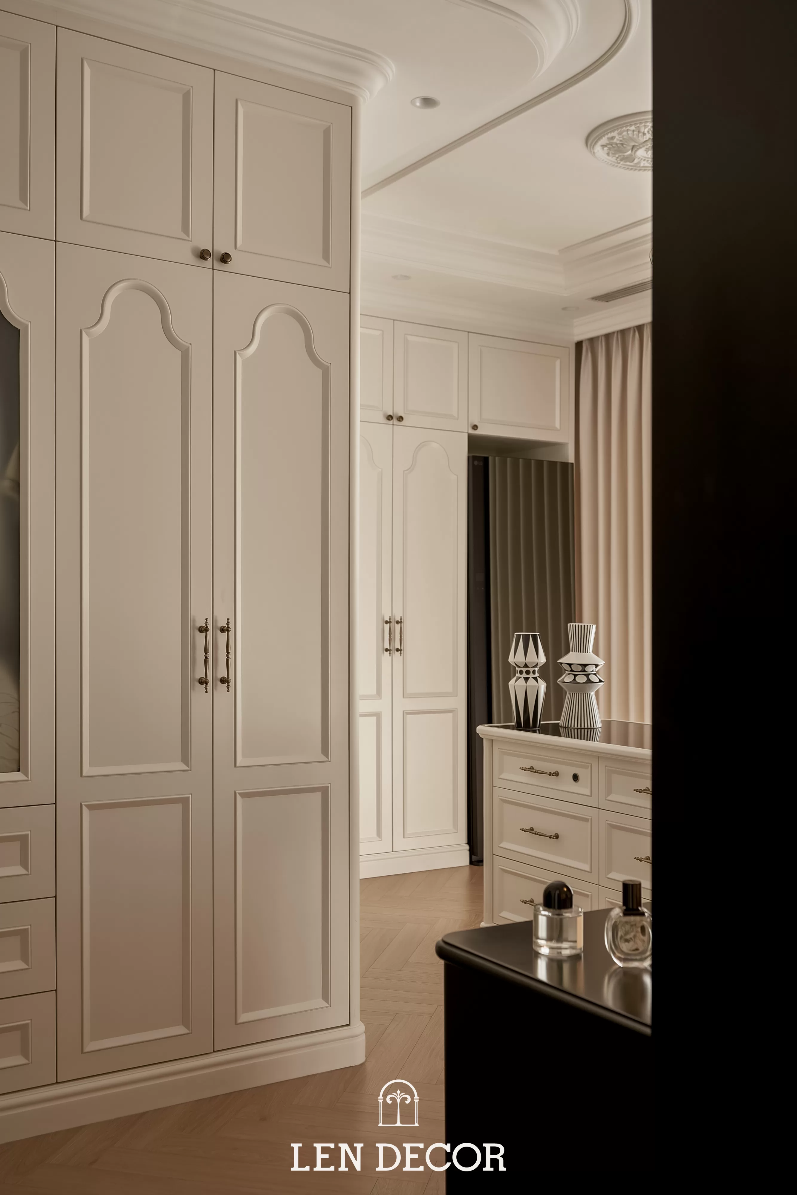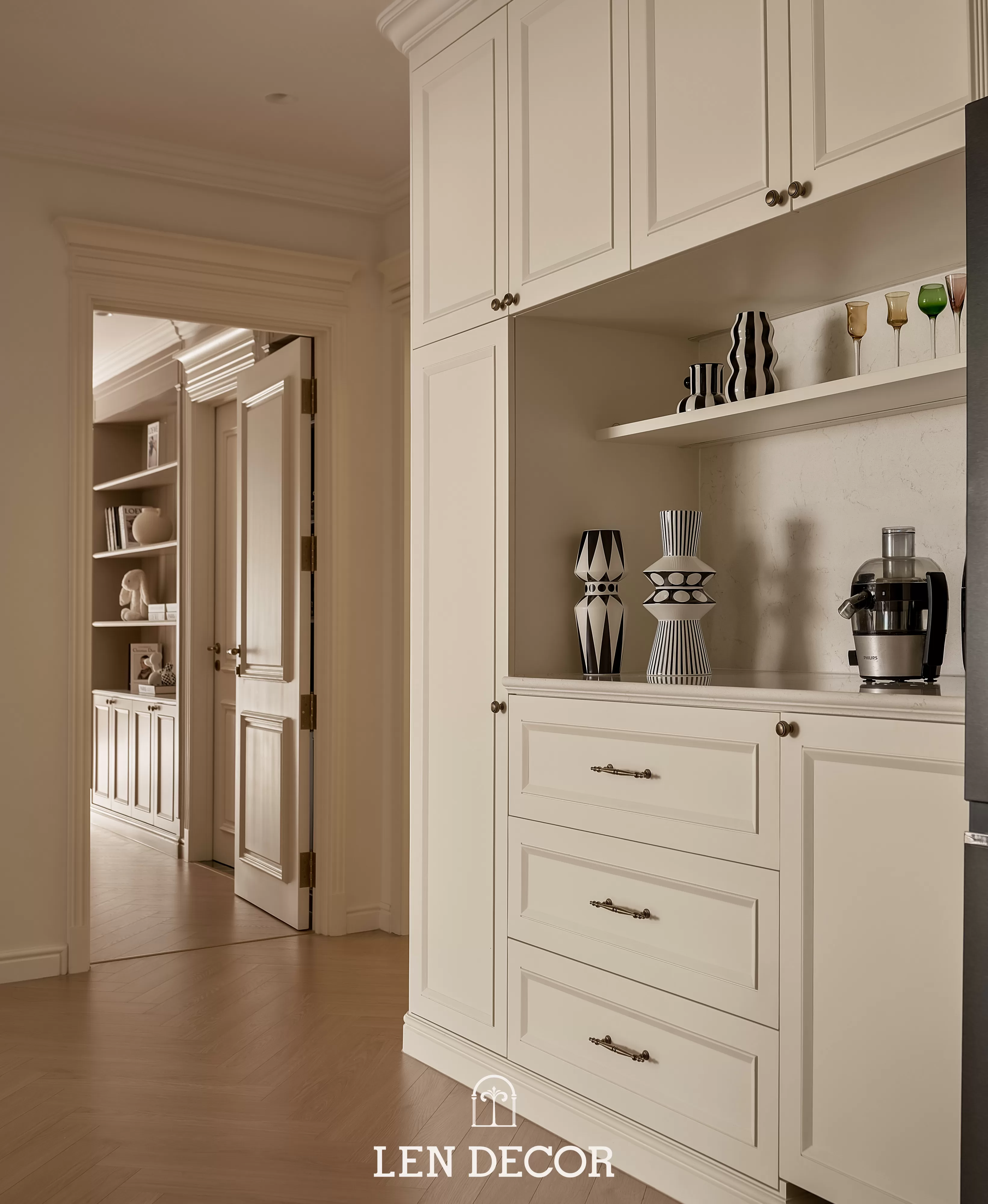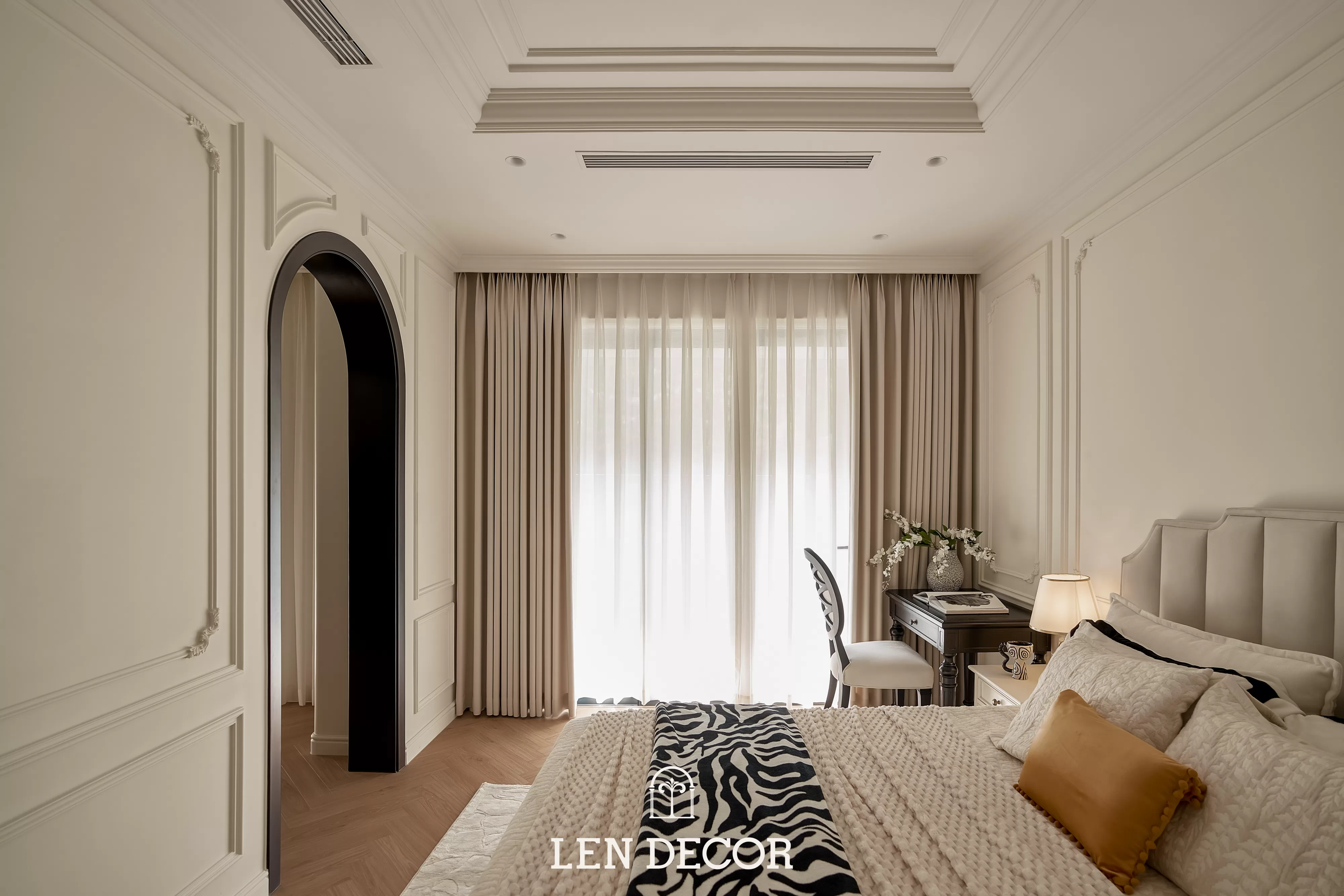 Căn hộ tại 𝑪𝒆𝒍𝒂𝒅𝒐𝒏 𝑪𝒊𝒕𝒚 sẽ đón chào gia chủ bằng sắc cream white nhã nhặn và hệ cửa kính lớn, khéo léo đưa ánh nắng vào làm bừng sáng không gian. Cộng hưởng với ánh sáng, những đường chỉ mảnh trên tường hay trần giật cấp nhẹ nhàng trở thành điểm nhấn, tạo thêm chiều sâu và sự sang trọng cho tổng thể.