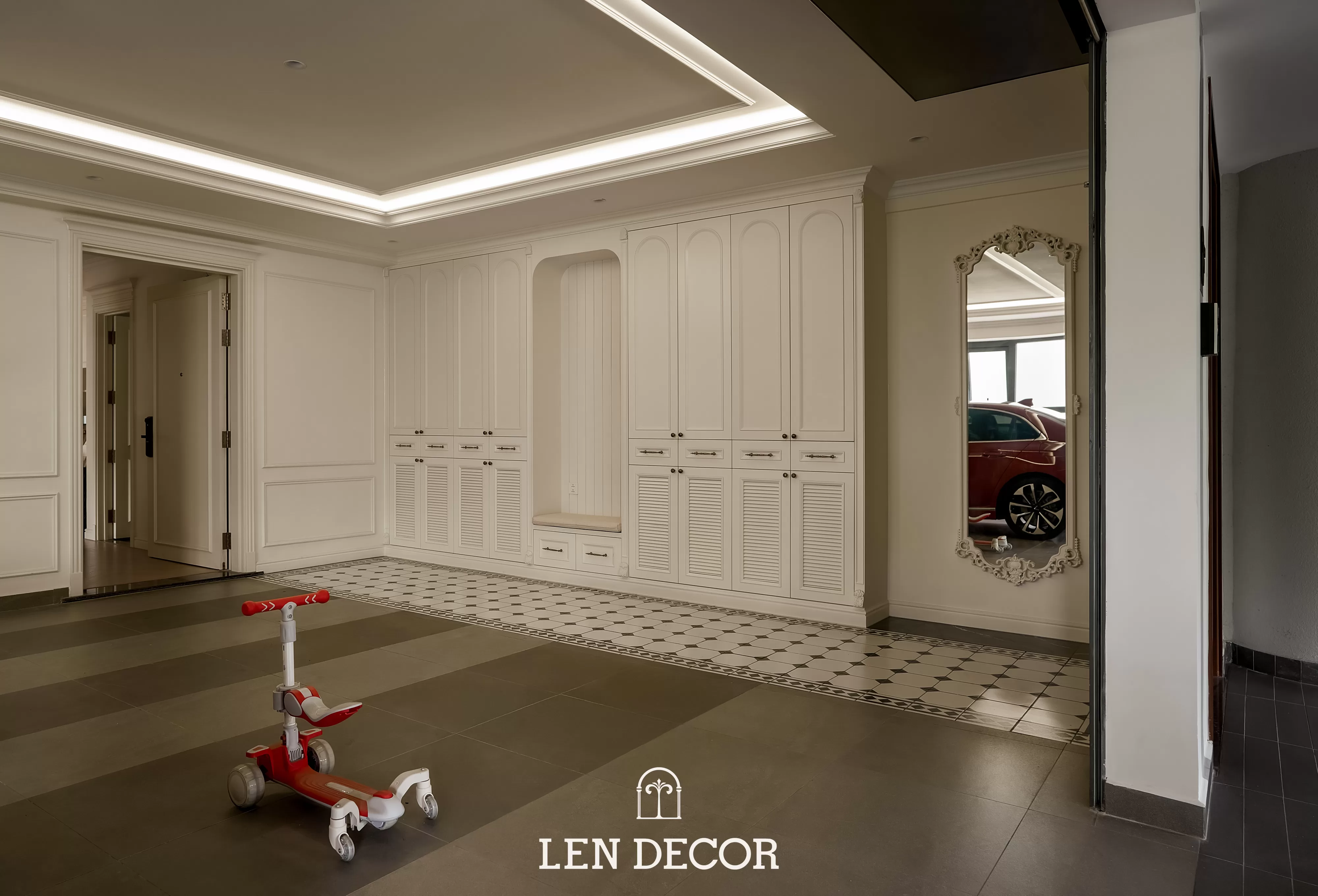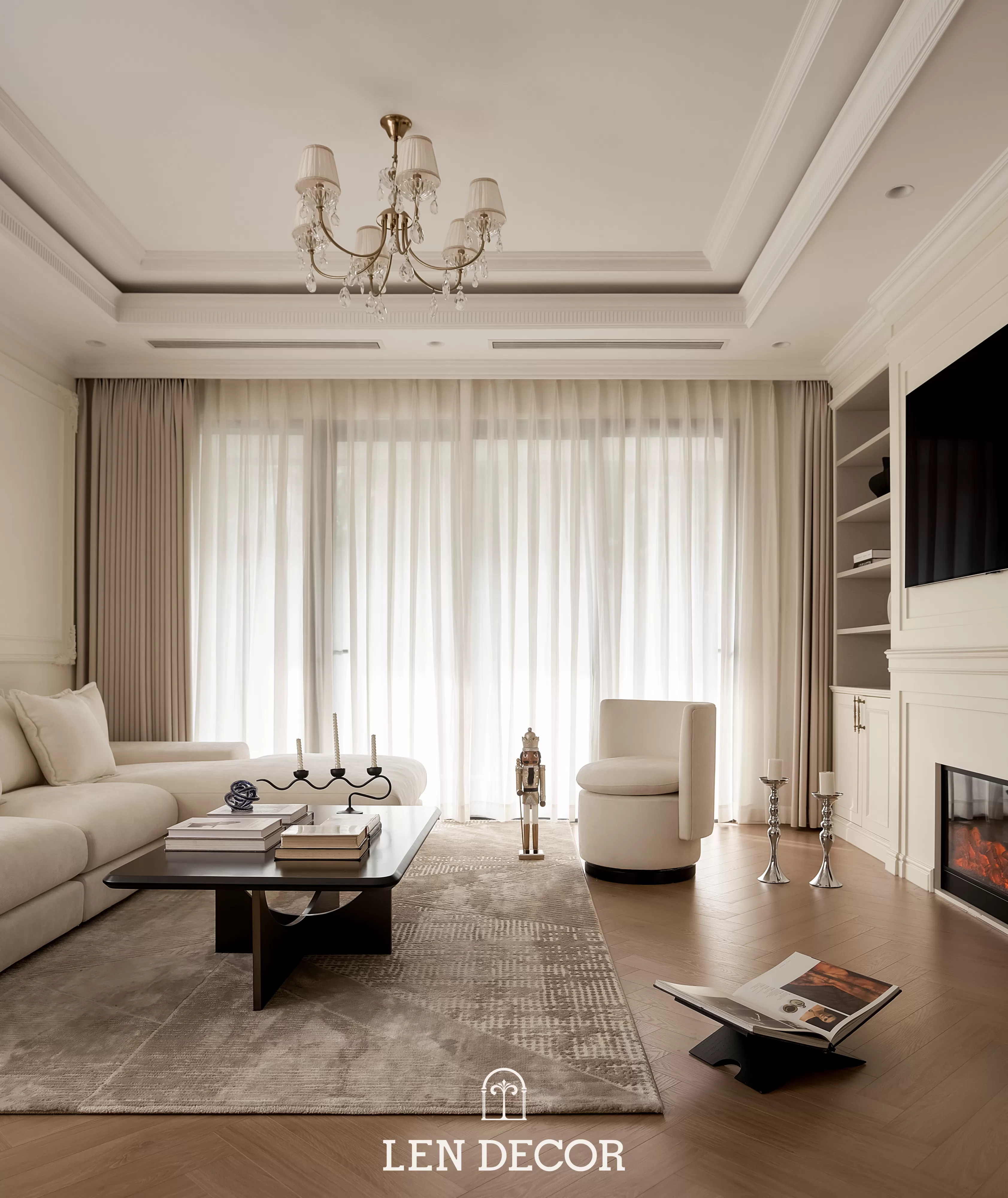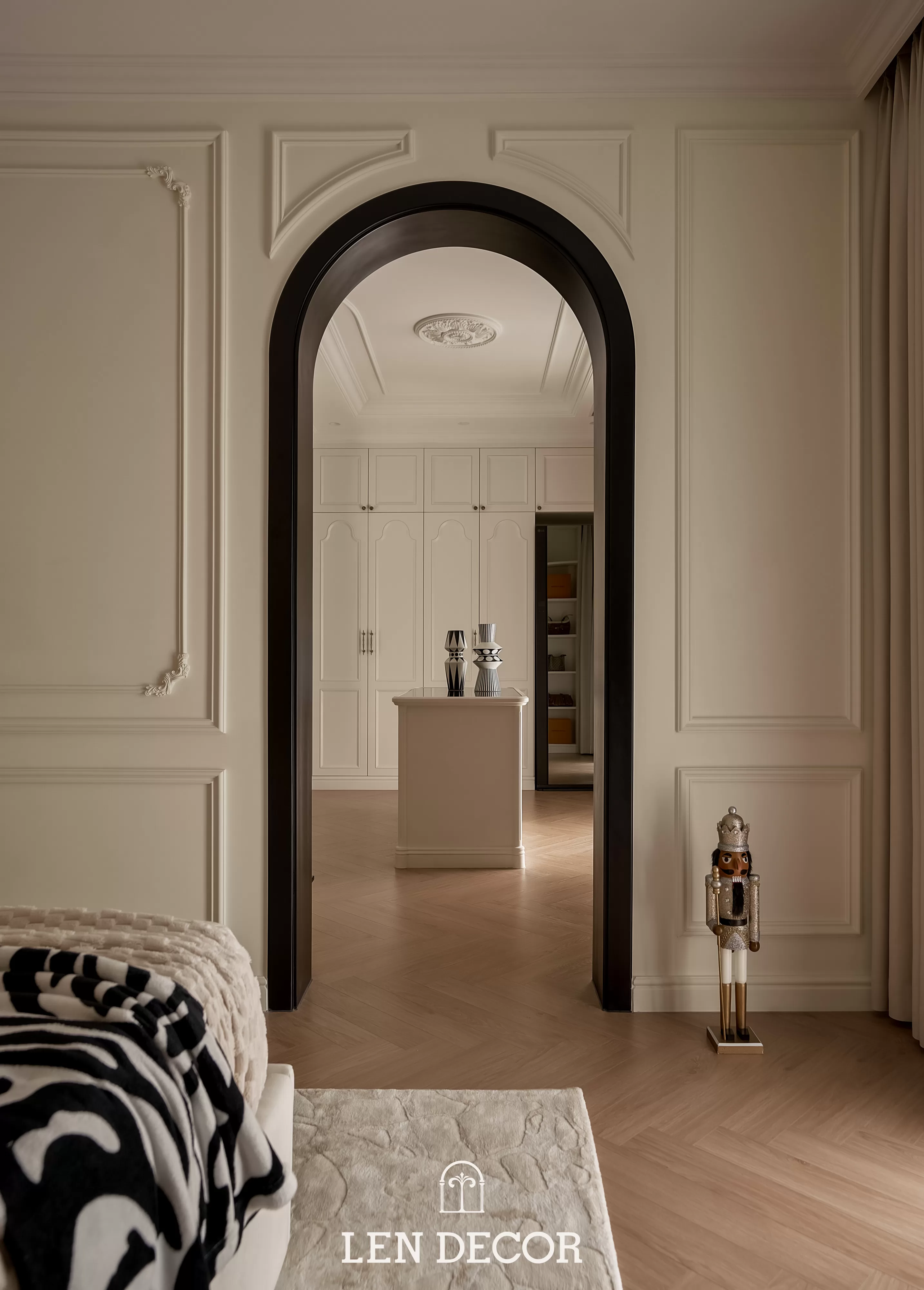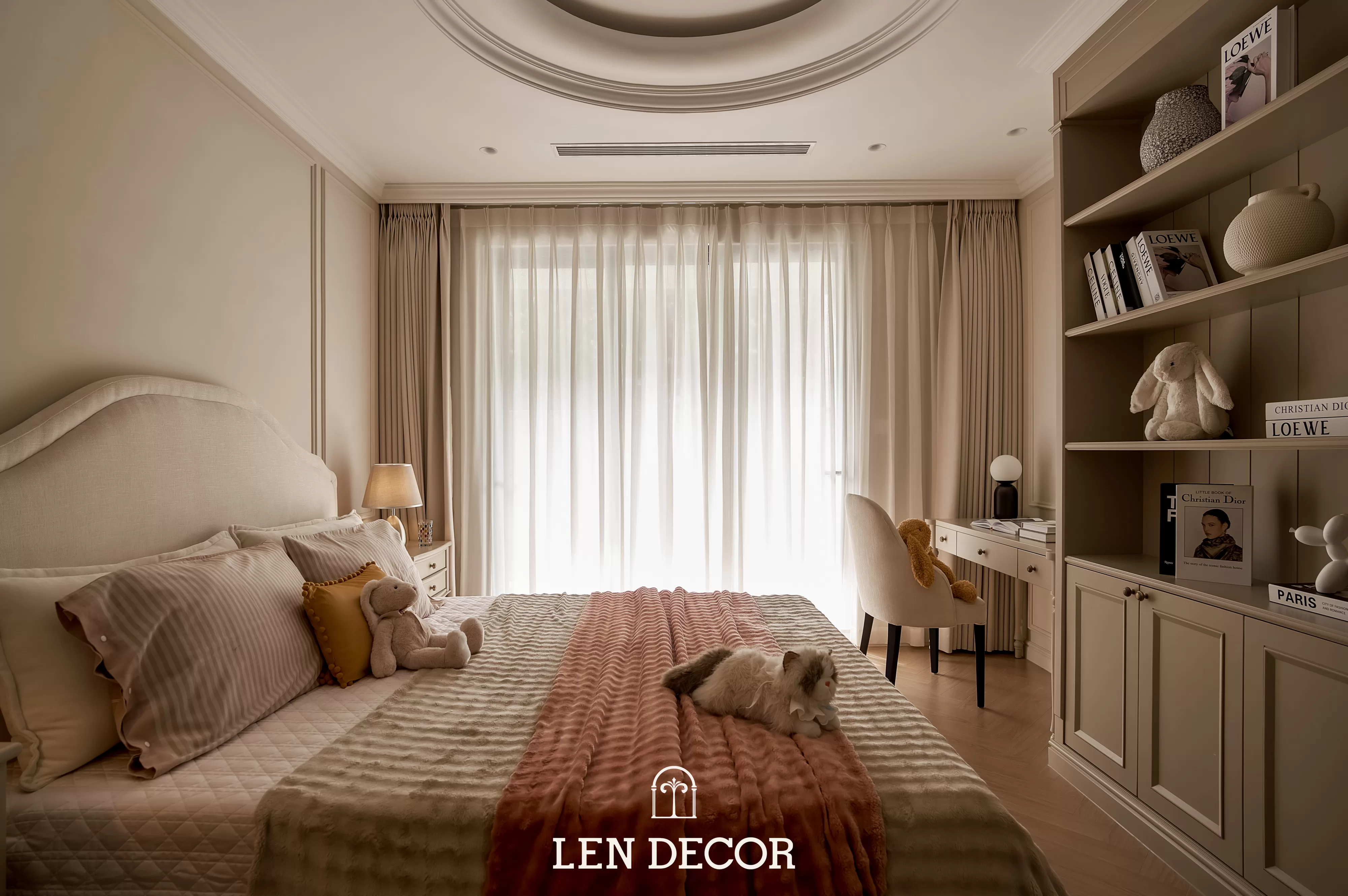 Căn hộ tại 𝑪𝒆𝒍𝒂𝒅𝒐𝒏 𝑪𝒊𝒕𝒚 sẽ đón chào gia chủ bằng sắc cream white nhã nhặn và hệ cửa kính lớn, khéo léo đưa ánh nắng vào làm bừng sáng không gian. Cộng hưởng với ánh sáng, những đường chỉ mảnh trên tường hay trần giật cấp nhẹ nhàng trở thành điểm nhấn, tạo thêm chiều sâu và sự sang trọng cho tổng thể.