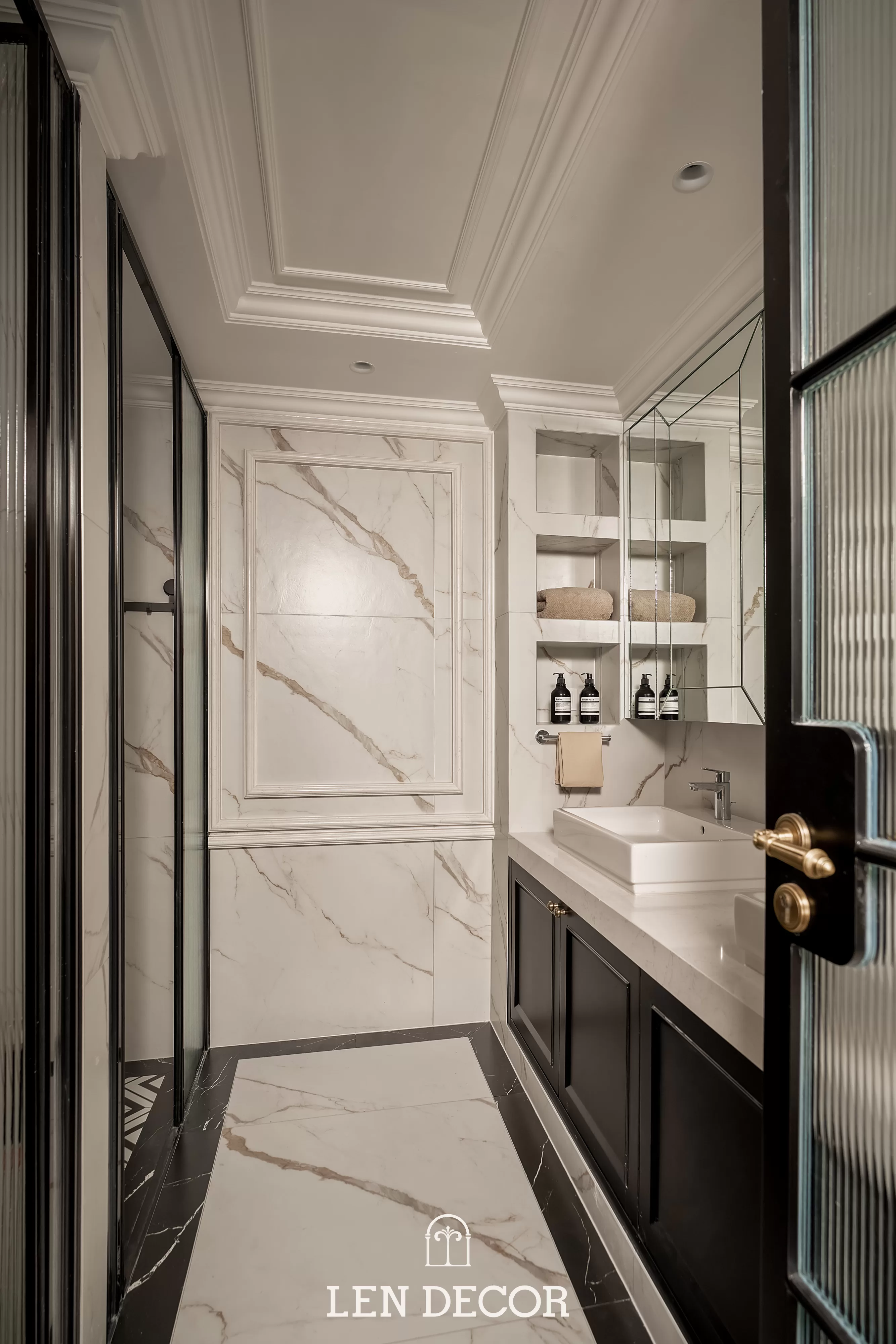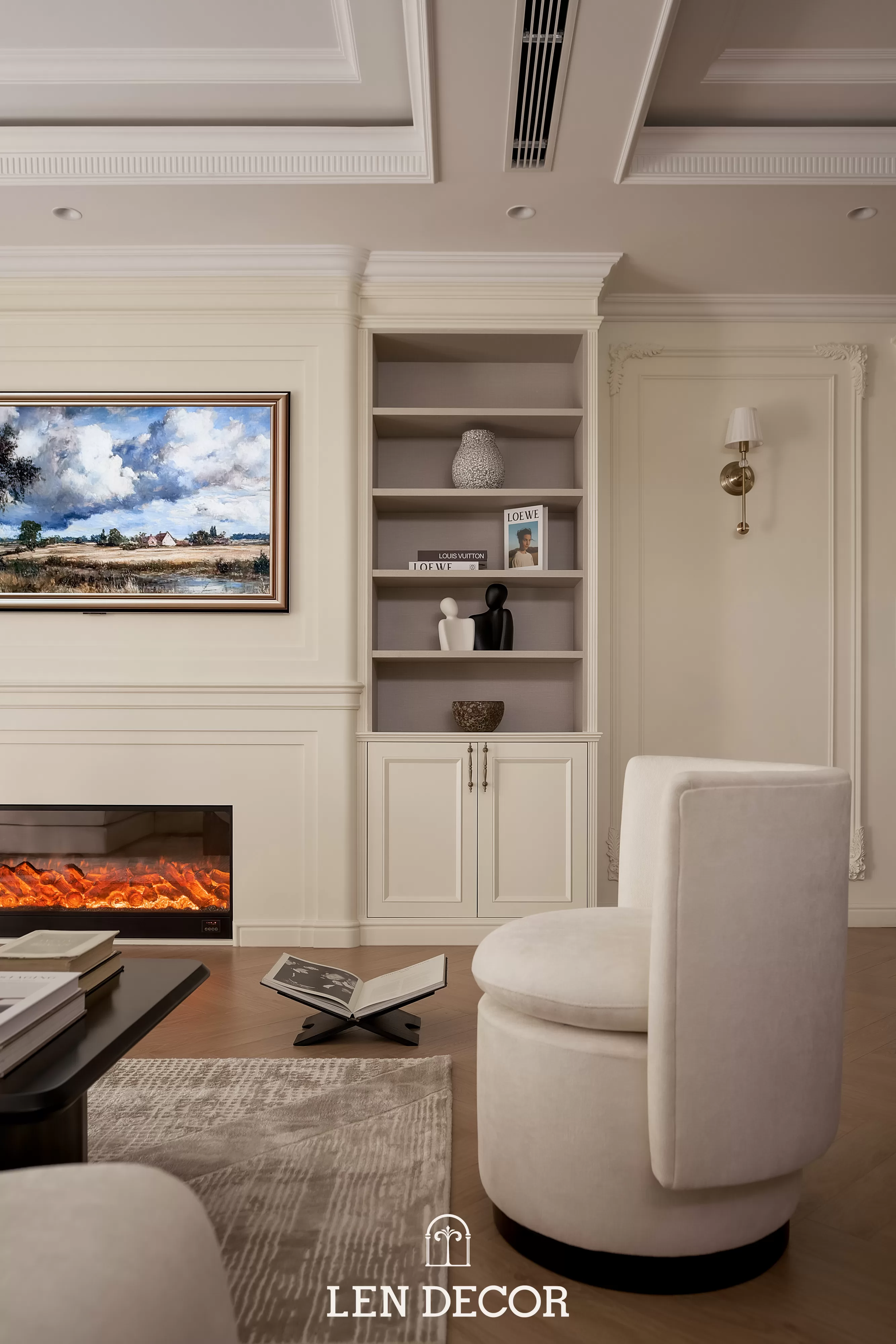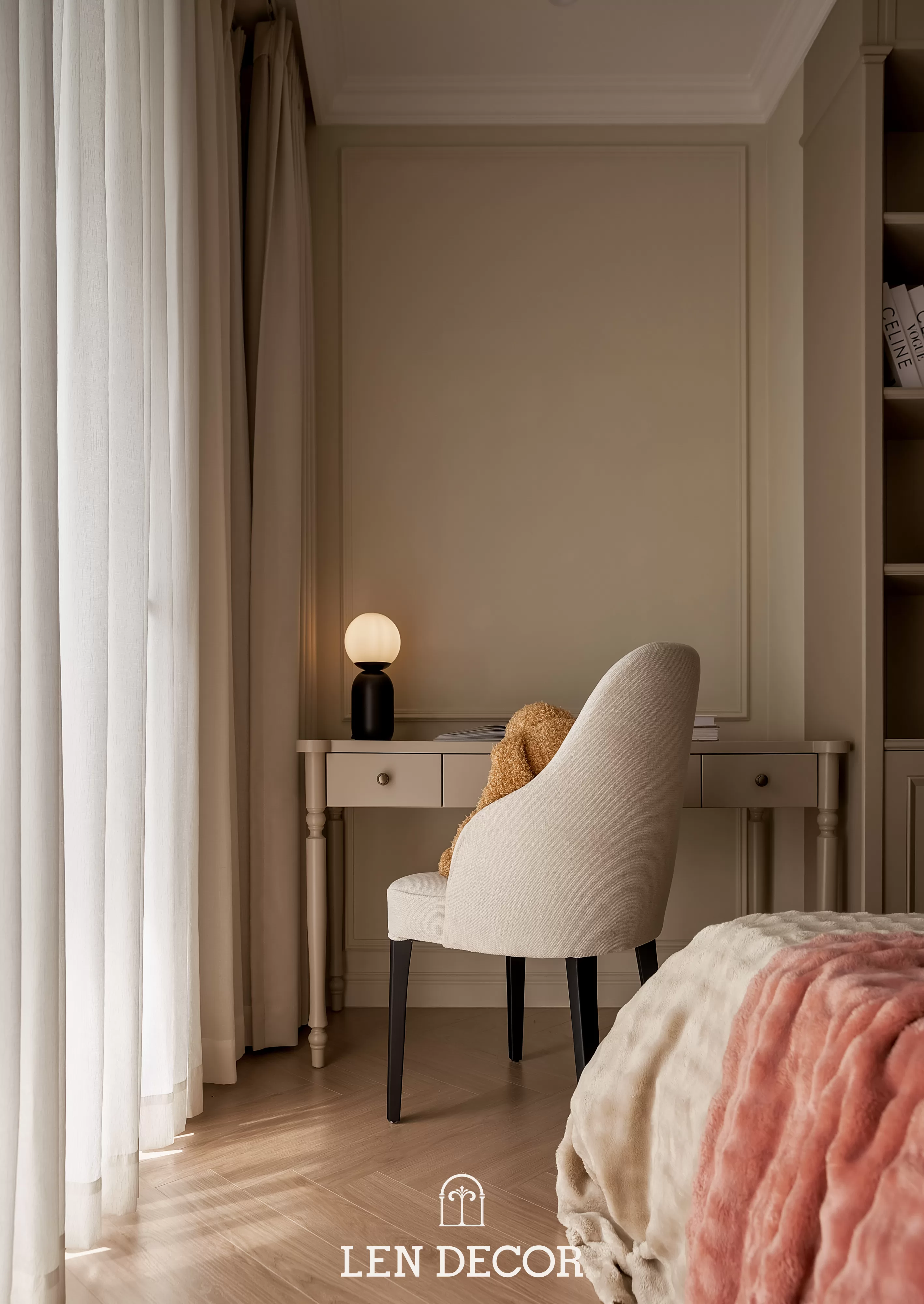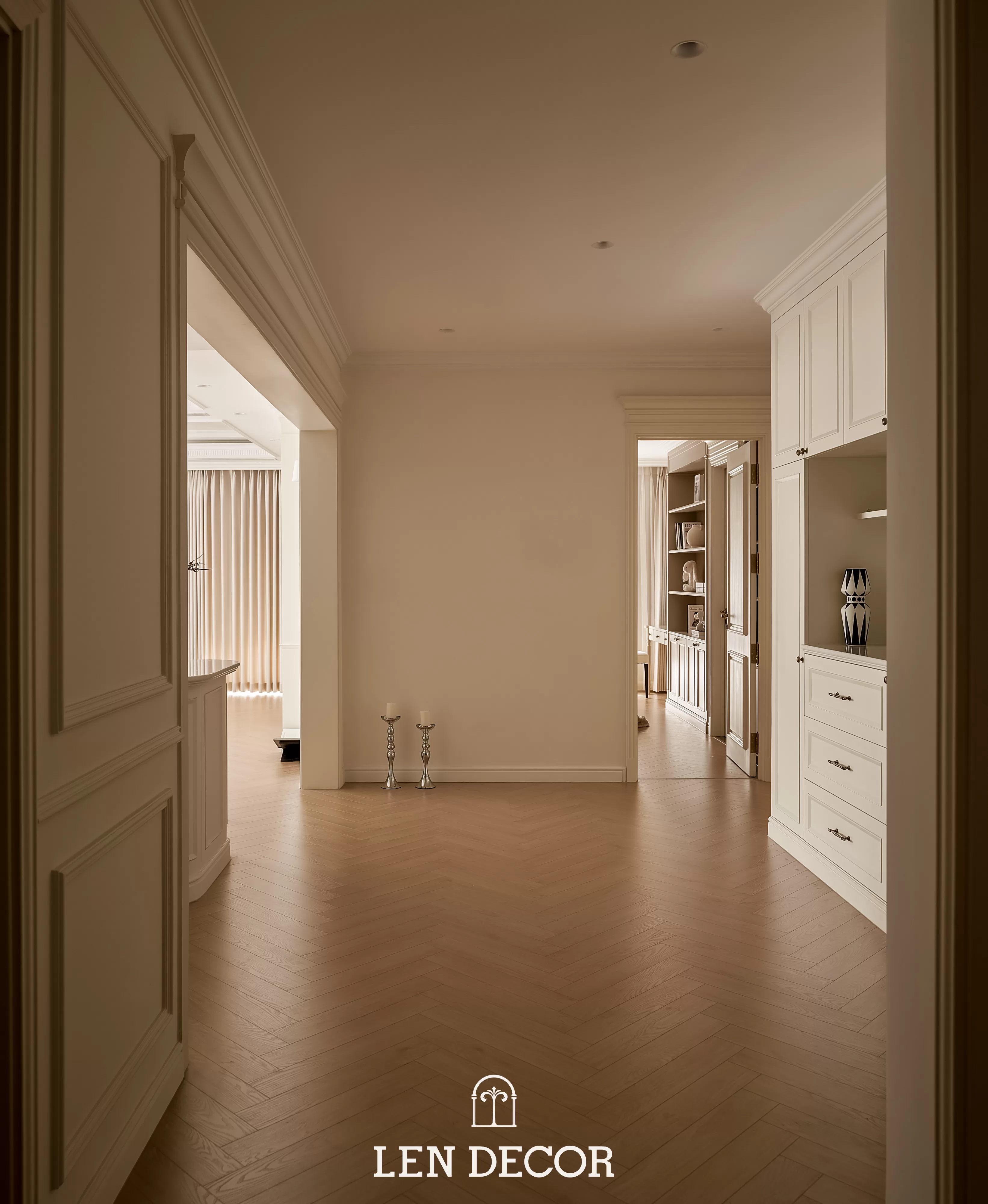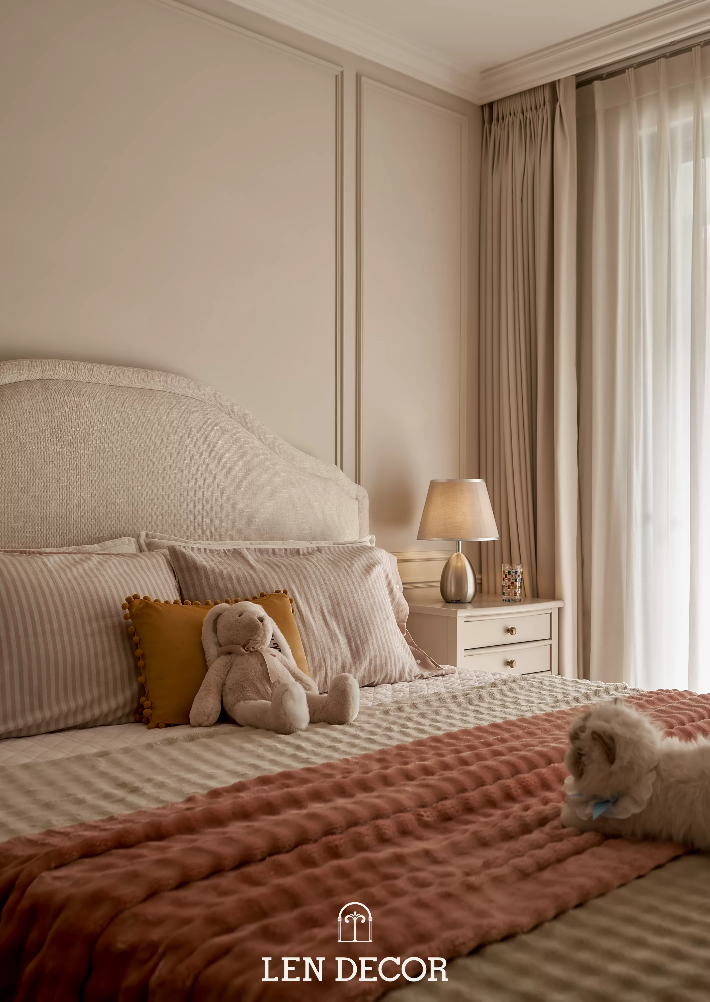 Căn hộ tại 𝑪𝒆𝒍𝒂𝒅𝒐𝒏 𝑪𝒊𝒕𝒚 sẽ đón chào gia chủ bằng sắc cream white nhã nhặn và hệ cửa kính lớn, khéo léo đưa ánh nắng vào làm bừng sáng không gian. Cộng hưởng với ánh sáng, những đường chỉ mảnh trên tường hay trần giật cấp nhẹ nhàng trở thành điểm nhấn, tạo thêm chiều sâu và sự sang trọng cho tổng thể.