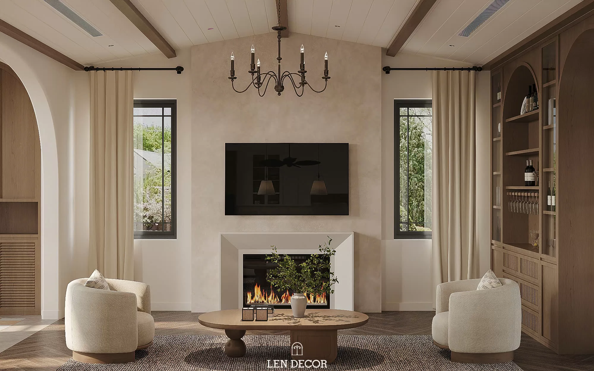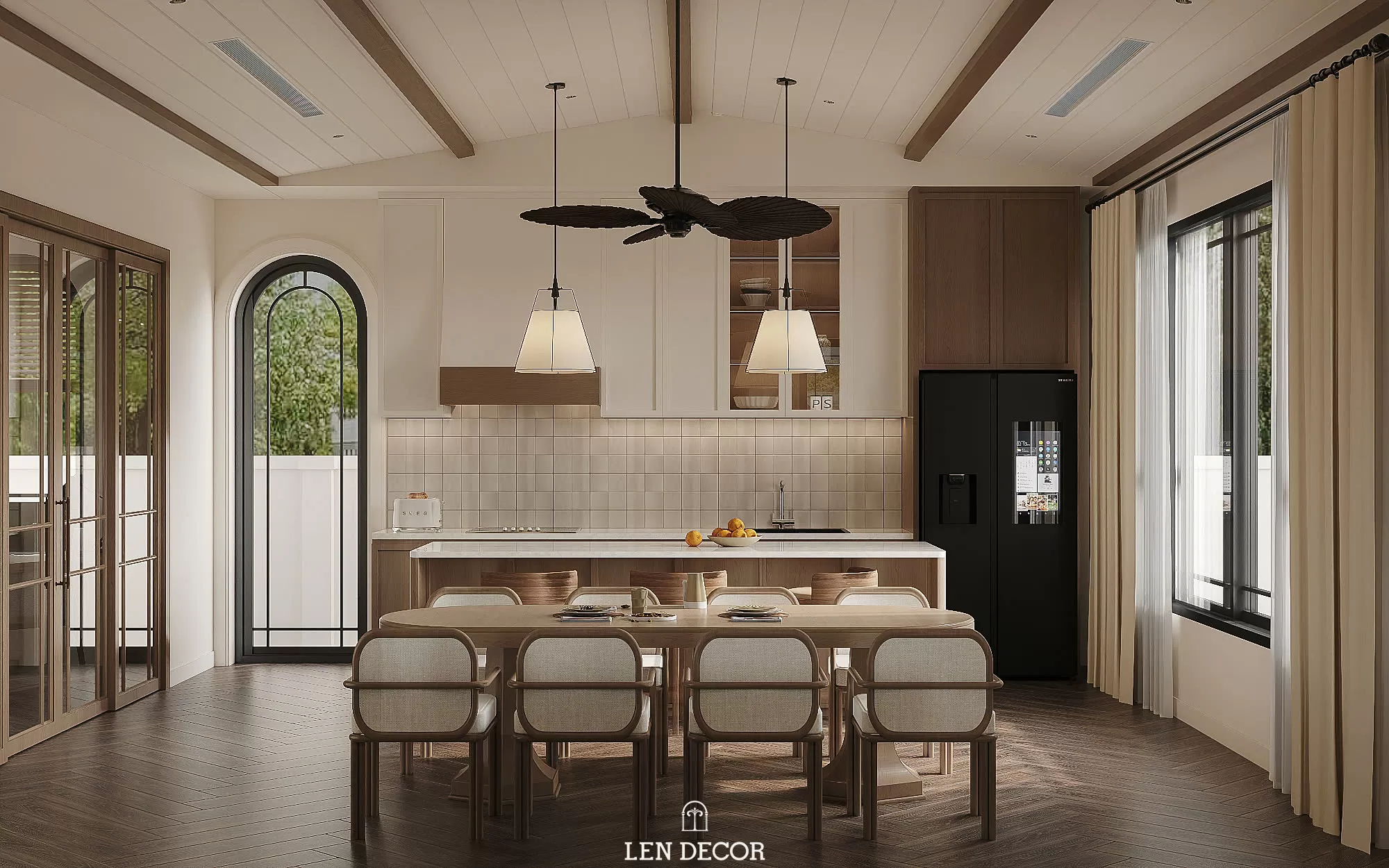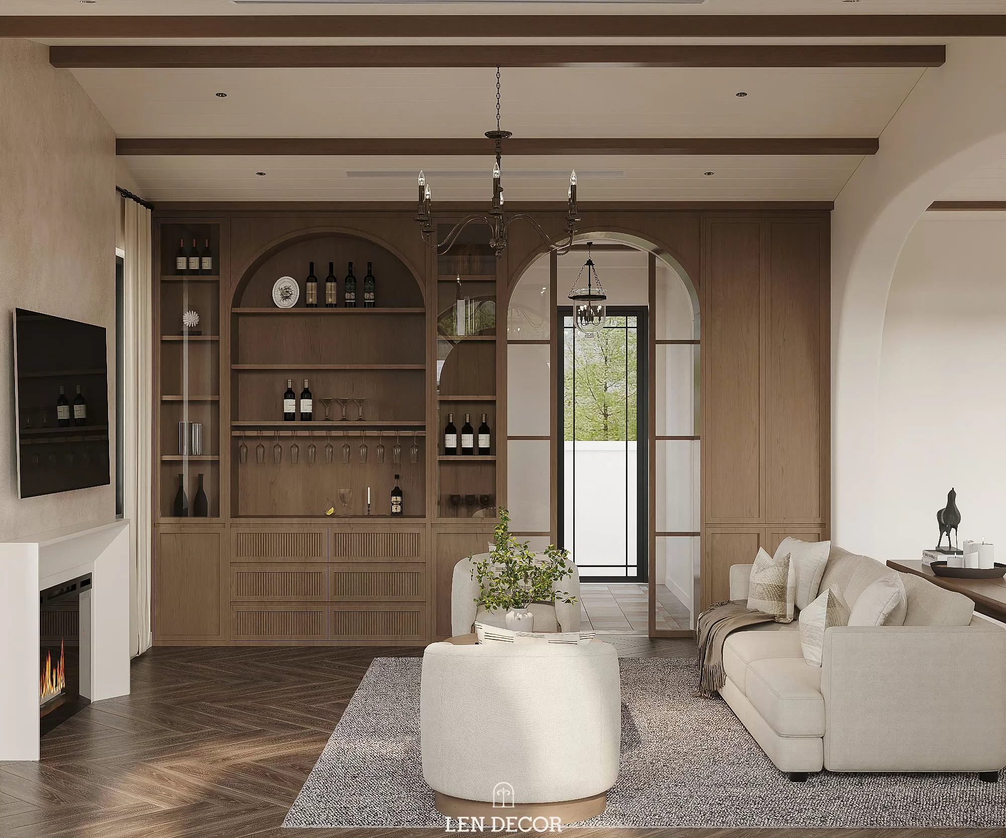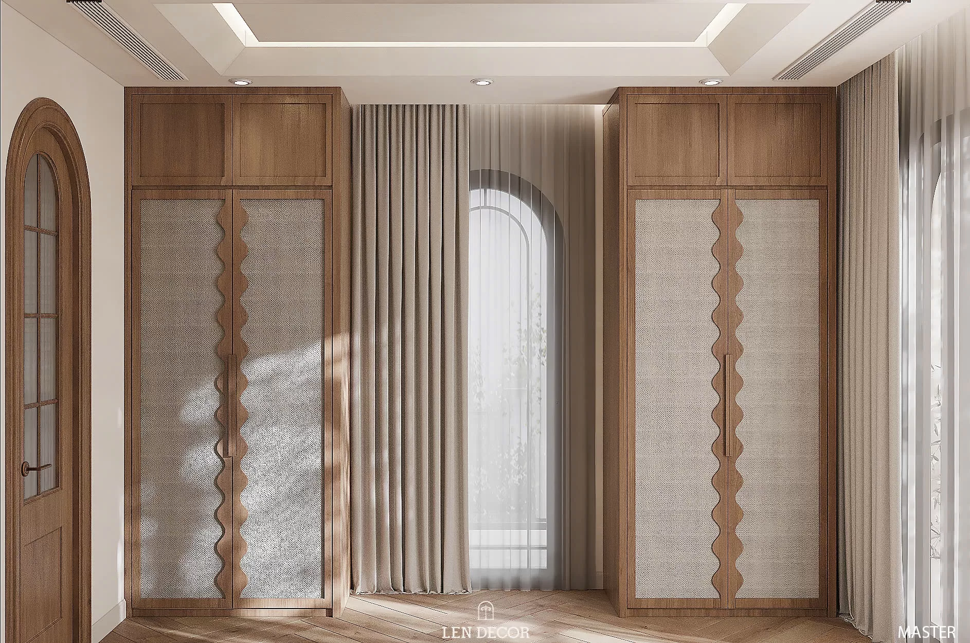 Không gian được tinh giản các chi tiết trang trí, kết hợp với những ô cửa vòm và đường nét thanh mảnh tạo nên sự dễ chịu về mặt thị giác.