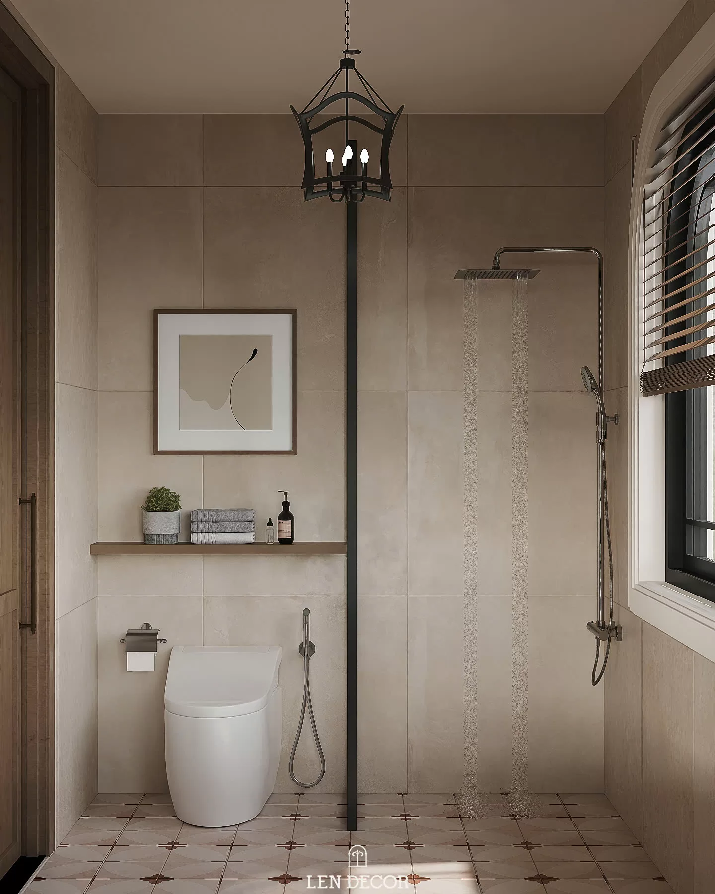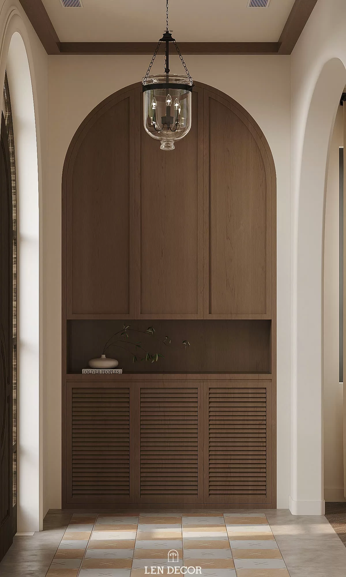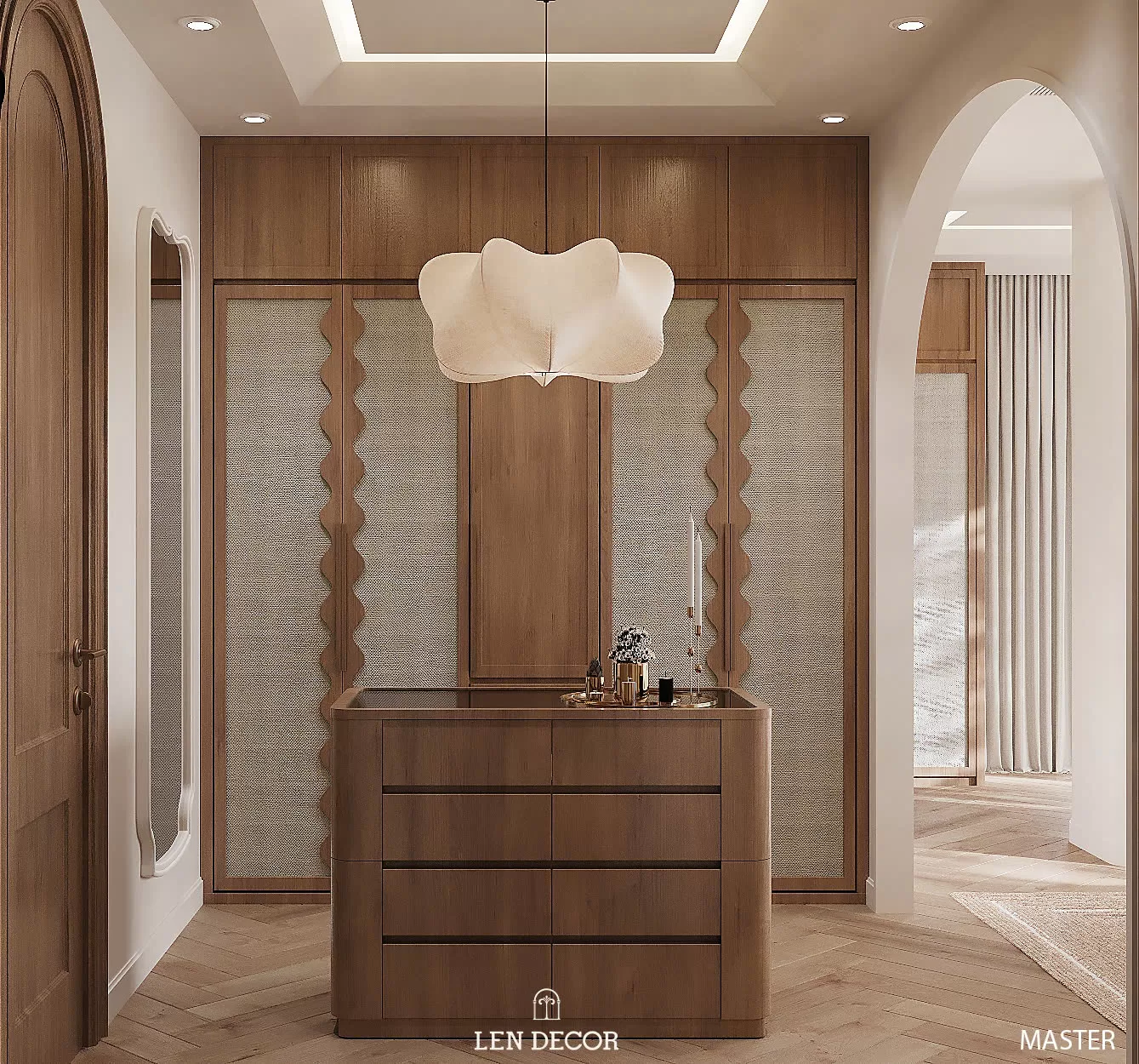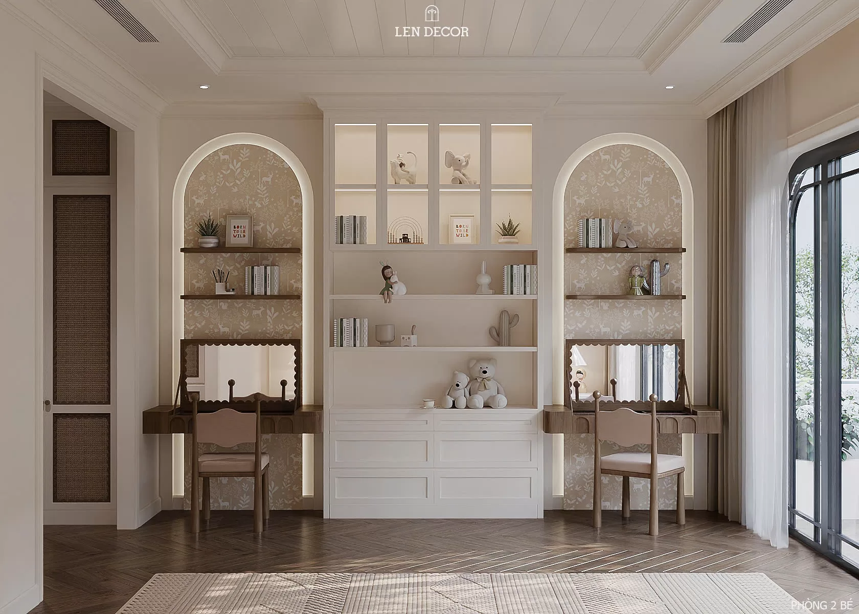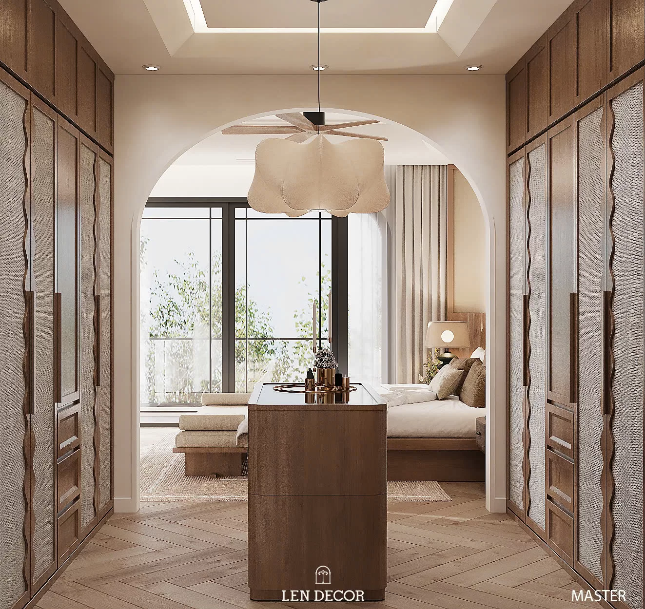 Không gian được tinh giản các chi tiết trang trí, kết hợp với những ô cửa vòm và đường nét thanh mảnh tạo nên sự dễ chịu về mặt thị giác.