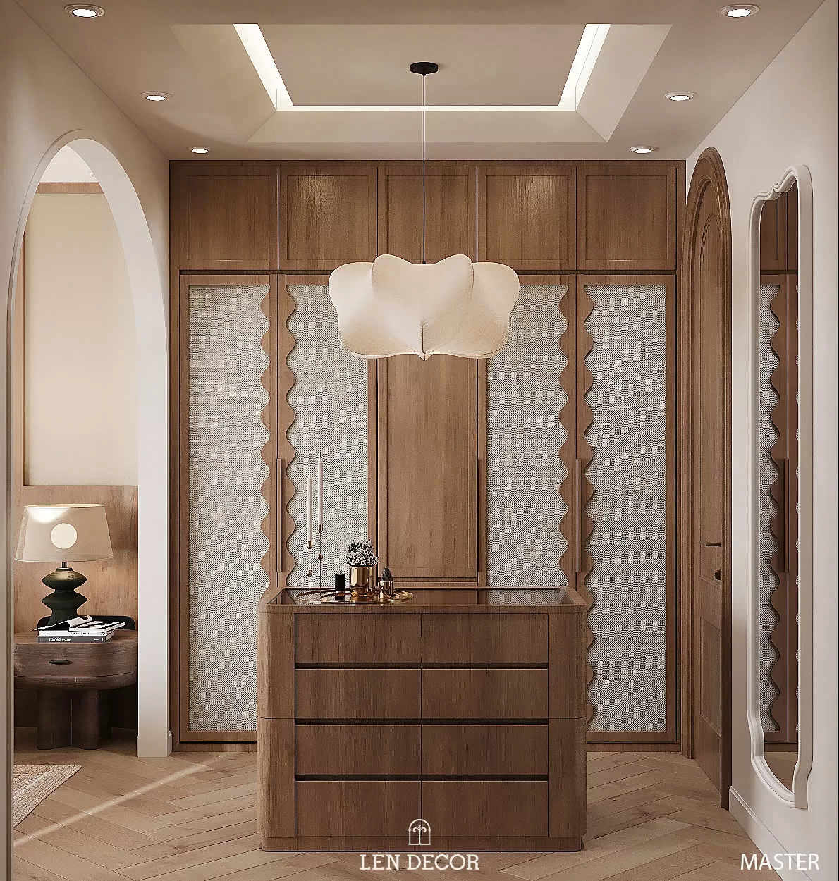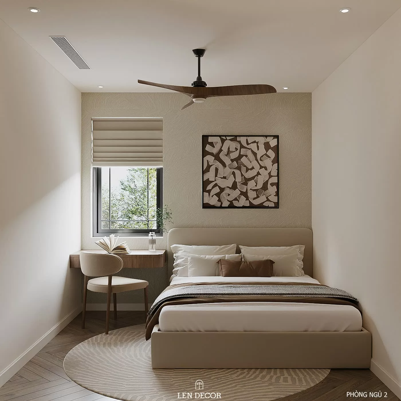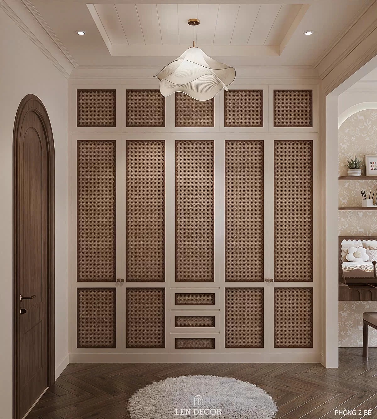 Các tông màu sáng như kem, be được lựa chọn làm nền, kết hợp cùng chất liệu gỗ và mây tre đan. Ánh sáng tự nhiên len vào từng góc nhỏ, chạm lên từng bề mặt thô mộc, khiến căn nhà lúc nào cũng có một vẻ dịu dàng và thân thuộc.