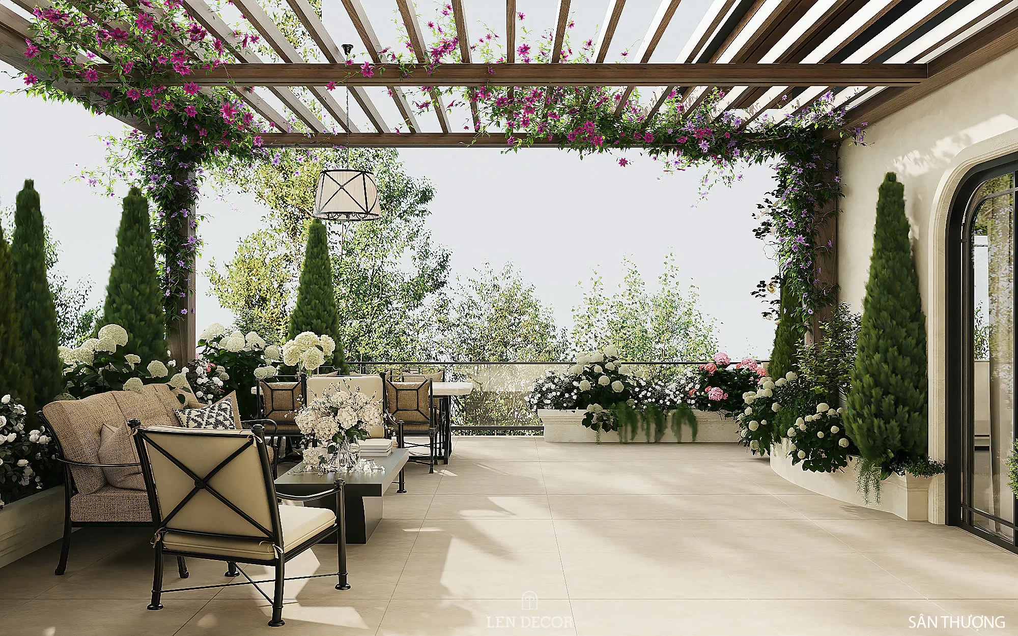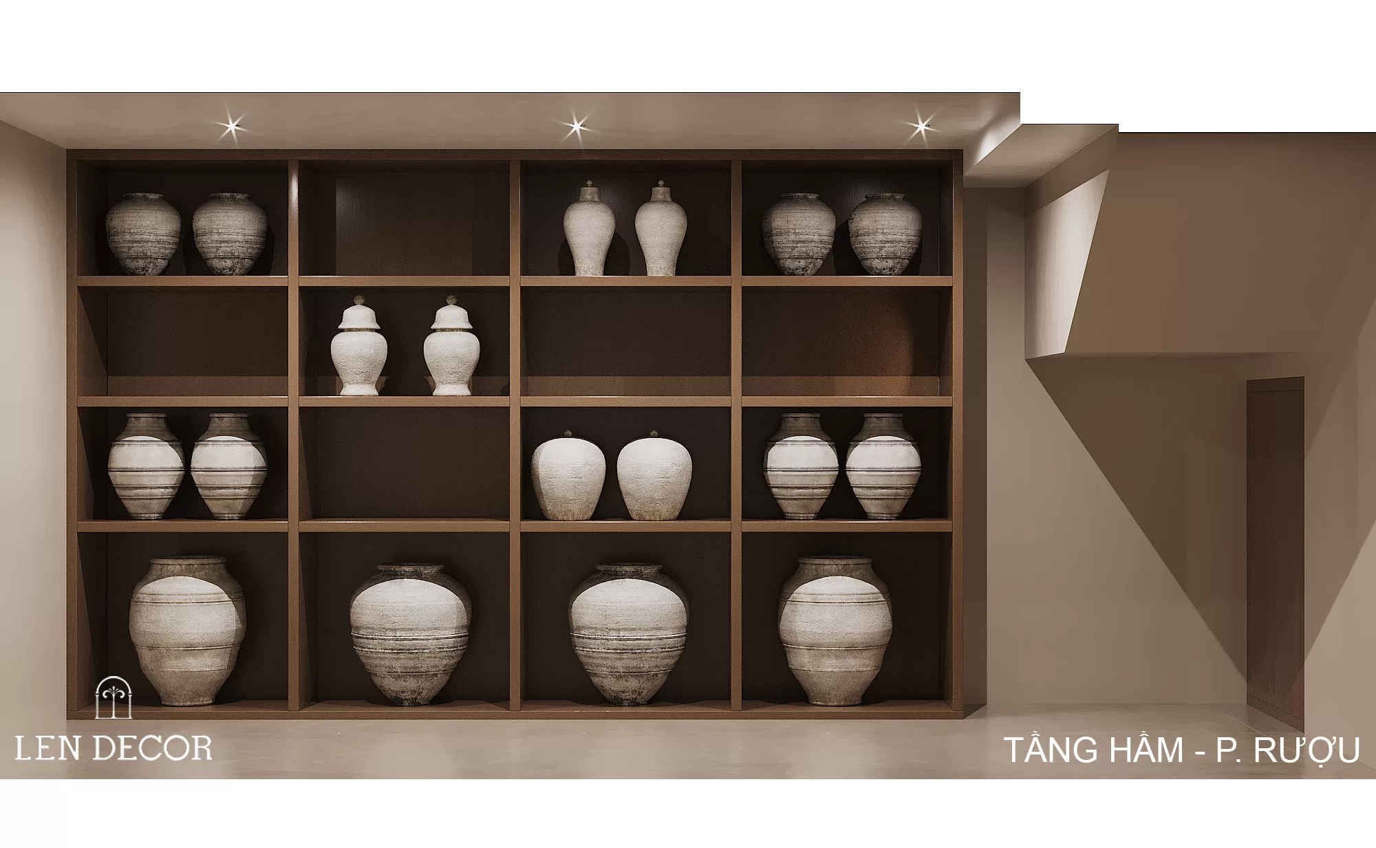 Từ sân thượng ngập tràn sắc màu cỏ cây đến căn hầm rượu với những vò gốm, mỗi mét vuông đều kể một câu chuyện về gu thẩm mỹ riêng biệt của gia chủ.