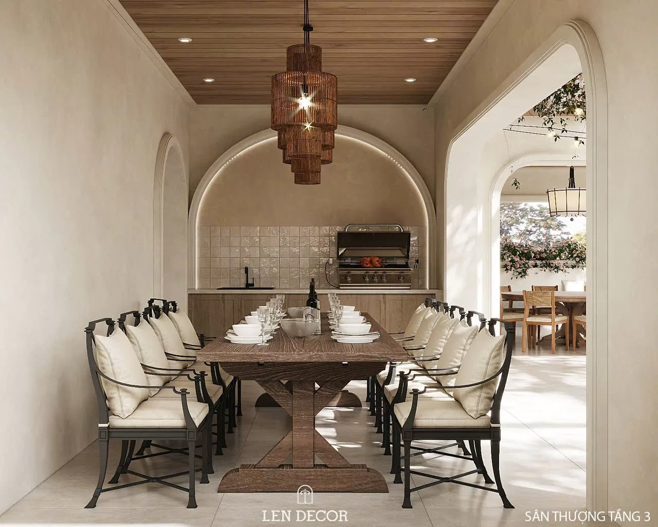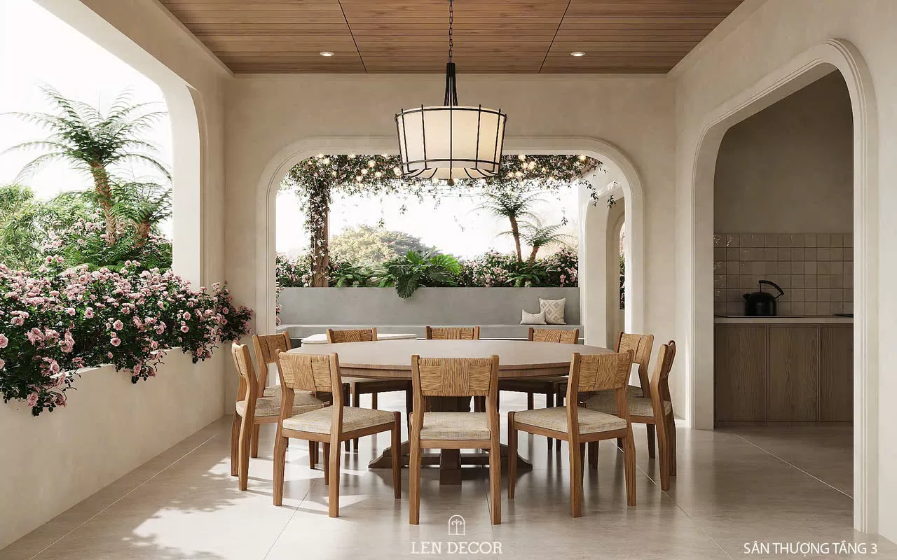 Bên cạnh những khoảng không gian cá nhân, gia đình còn có thể nuôi dưỡng sự gắn kết trong phòng ăn lớn, phòng sinh hoạt chung hay sân thượng với bàn ăn ngoài trời.