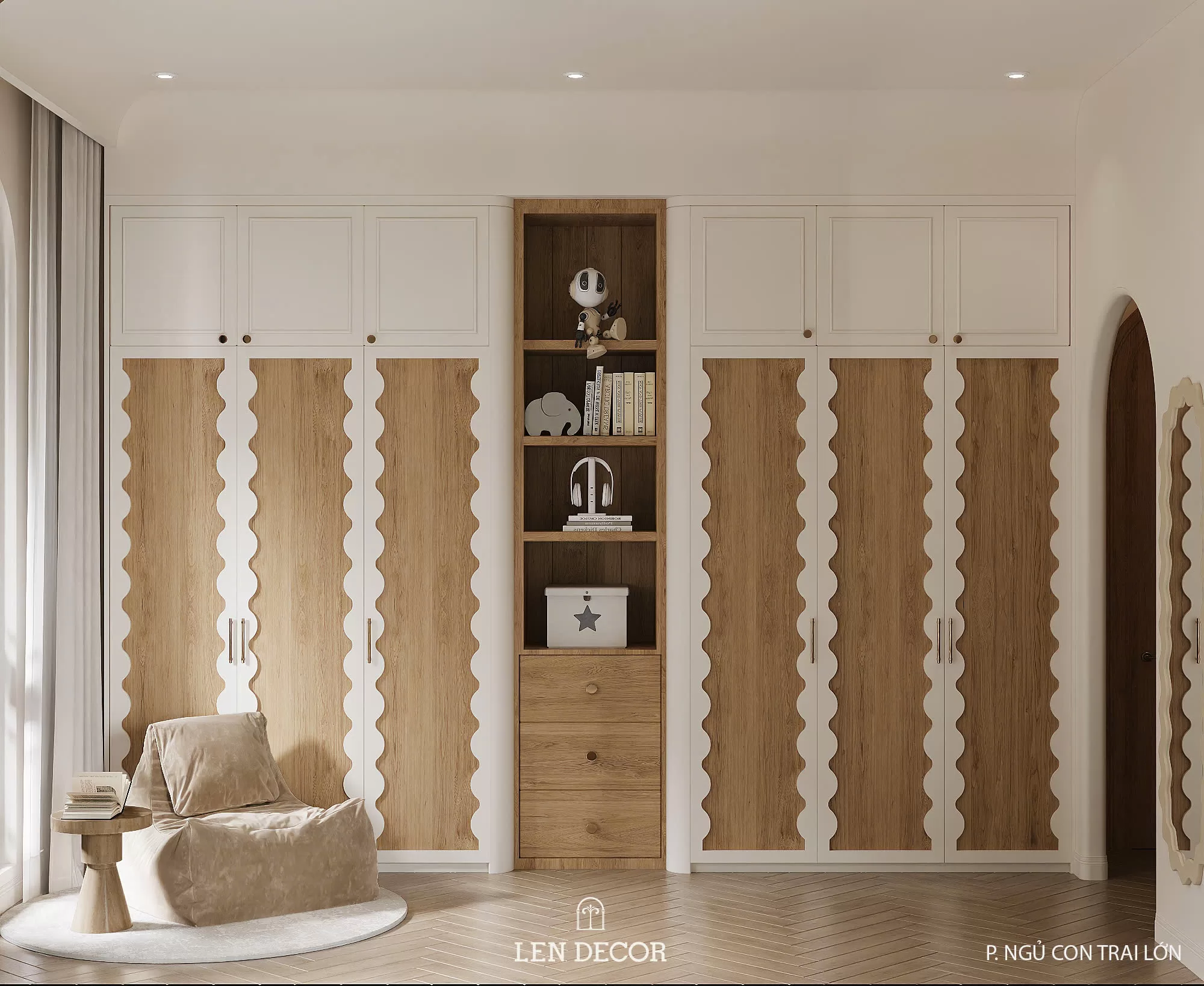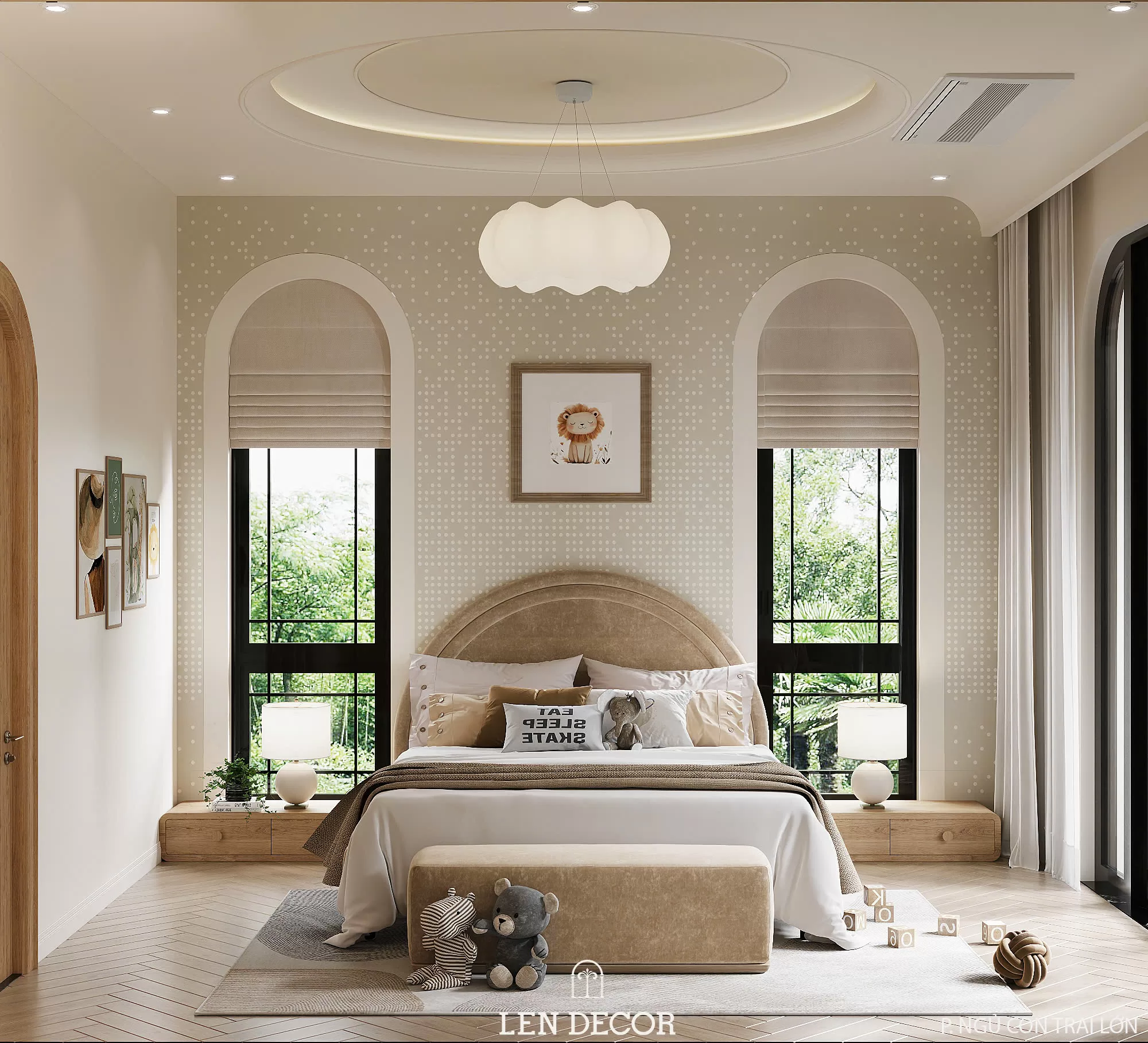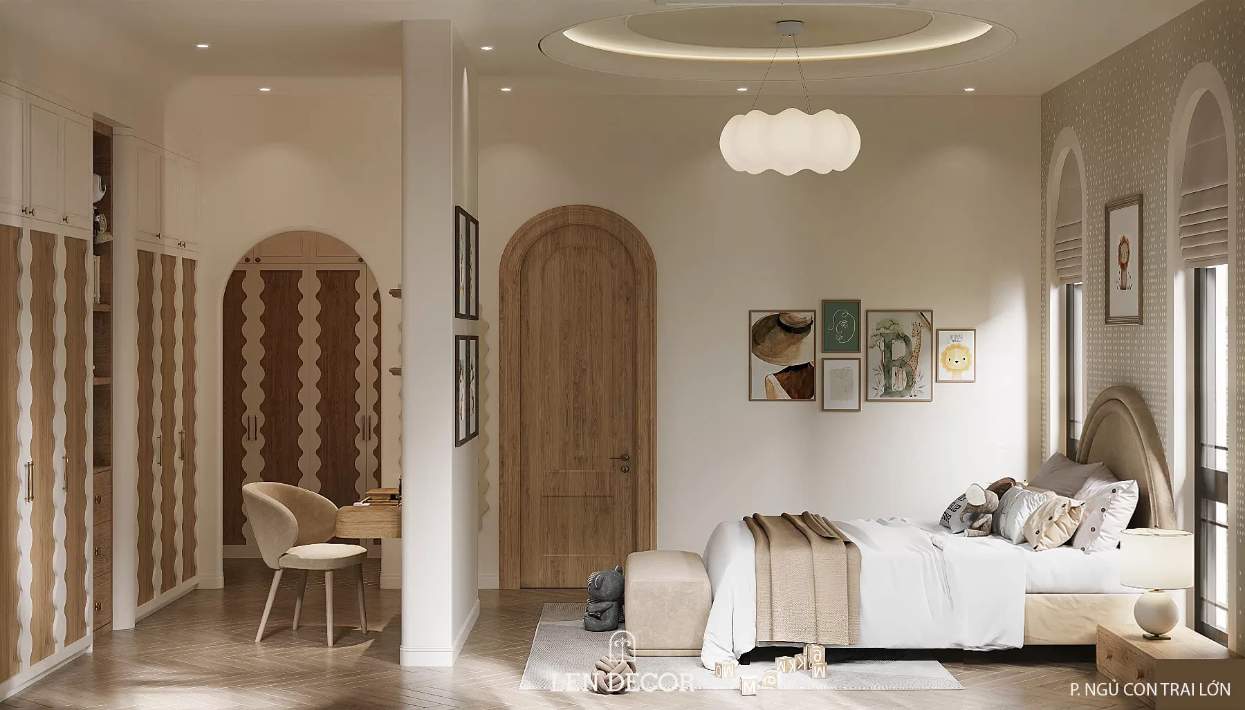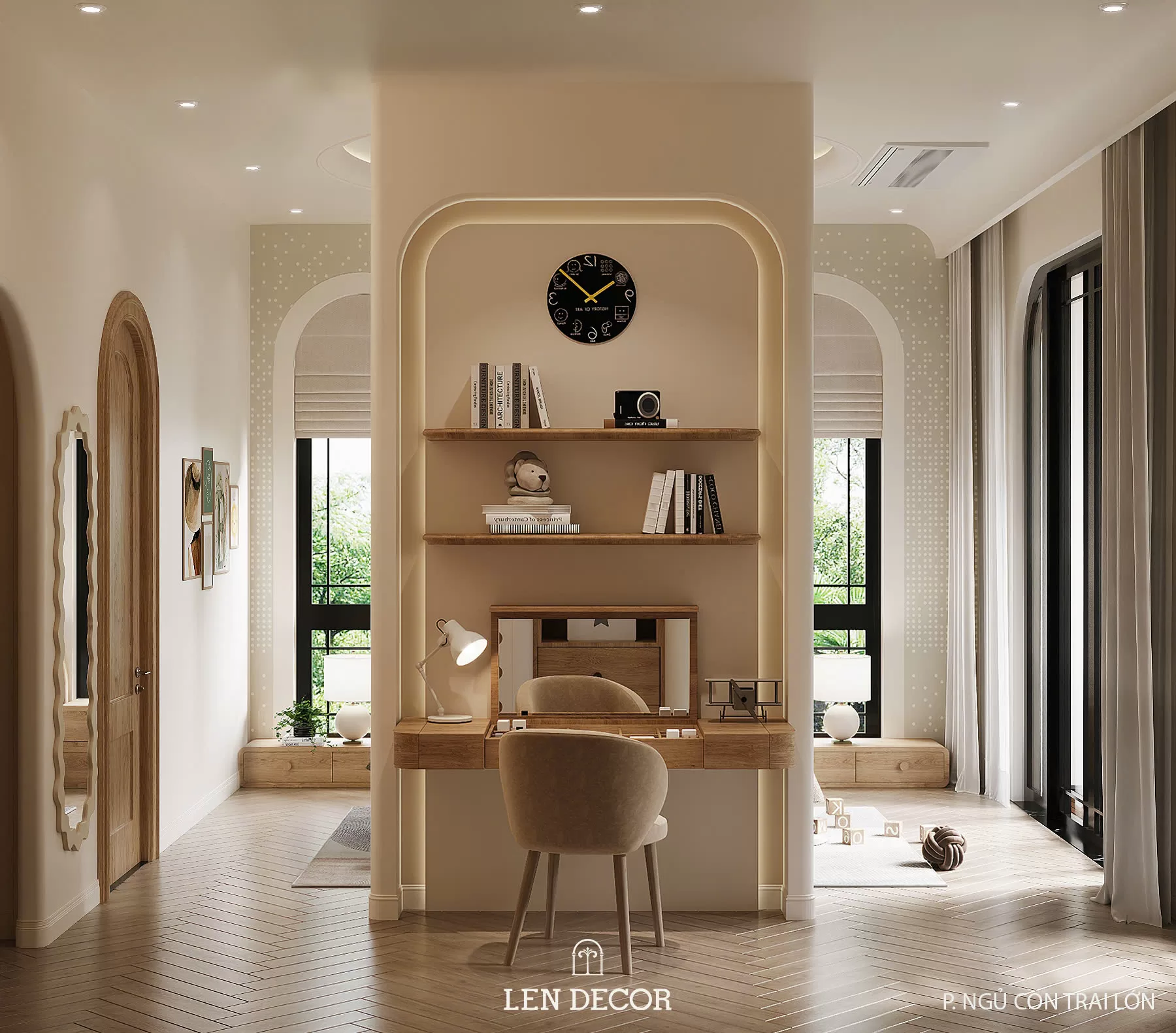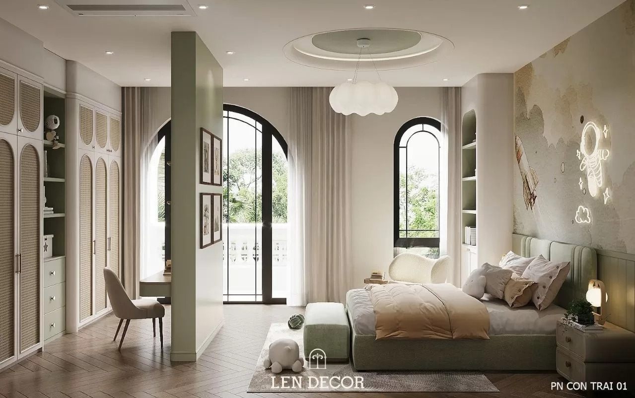 Nơi đây được 𝑳𝒆𝒏 𝑫𝒆𝒄𝒐𝒓 thiết kế để nhiều thế hệ cùng sinh sống, mỗi thành viên đều có sự riêng tư và trải nghiệm phù hợp. Người lớn tận hưởng sự tĩnh tại trong những căn phòng sử dụng chất liệu gỗ và ánh sáng ấm áp. Còn trẻ thơ được thỏa sức khám phá với sân chơi, phòng ngủ và khu đọc sách giúp phát triển tư duy.