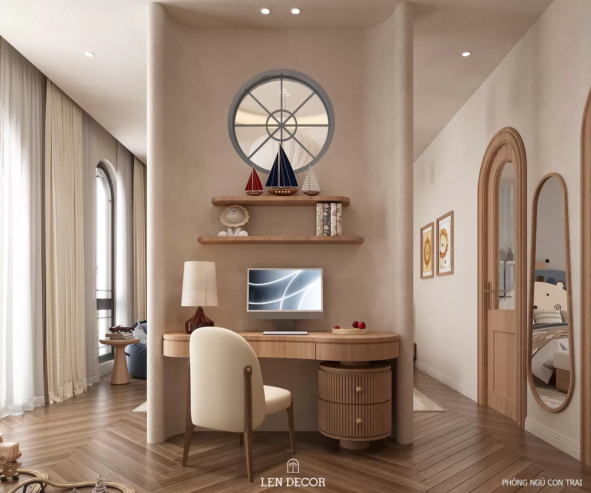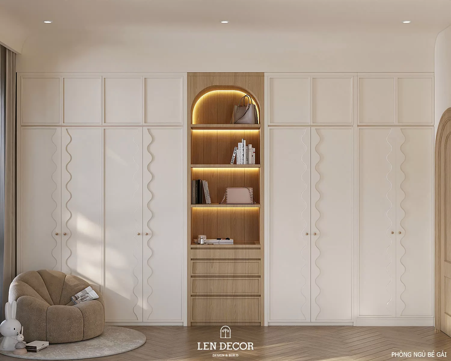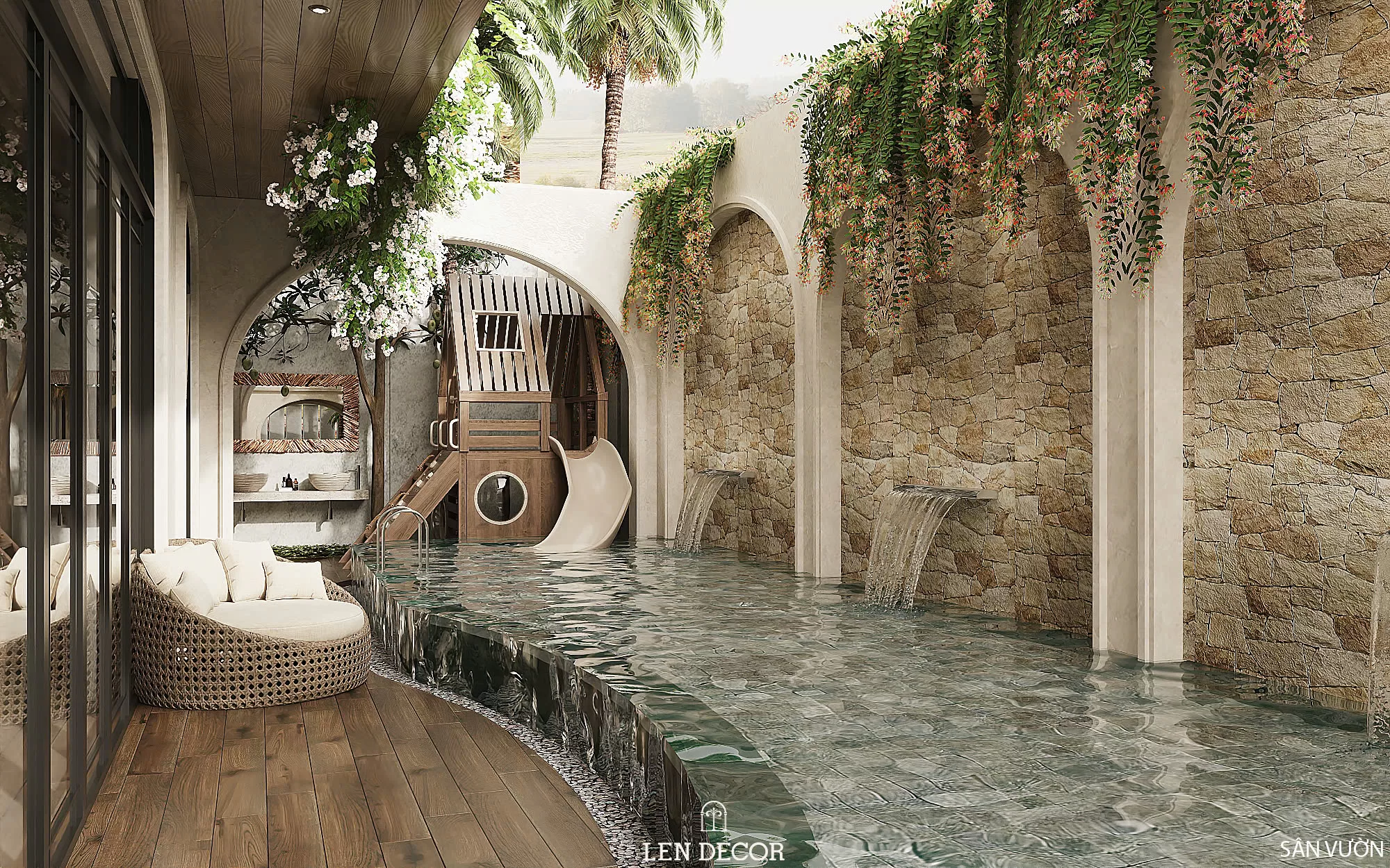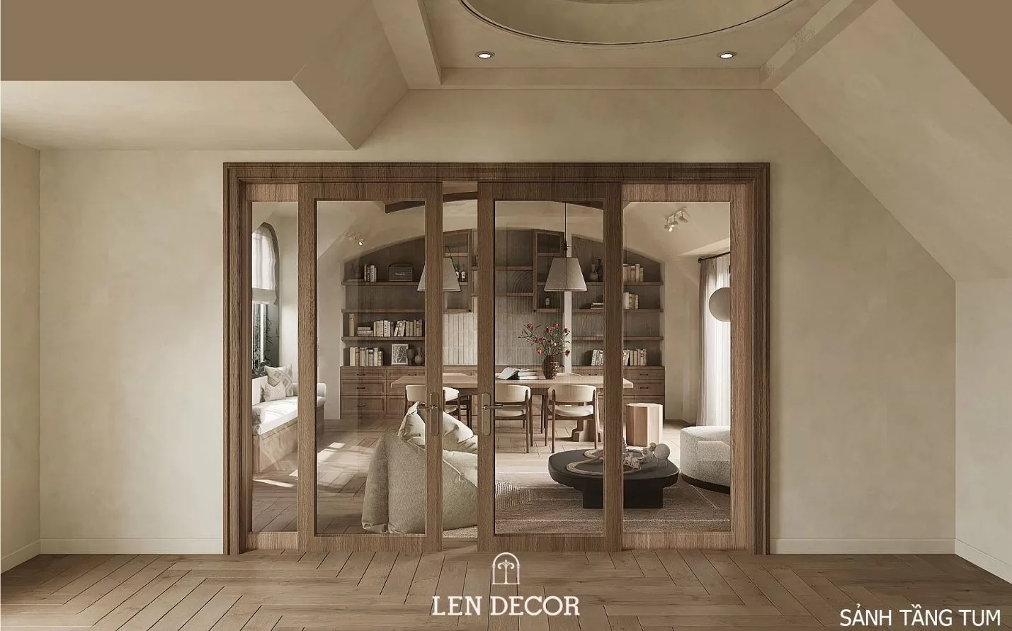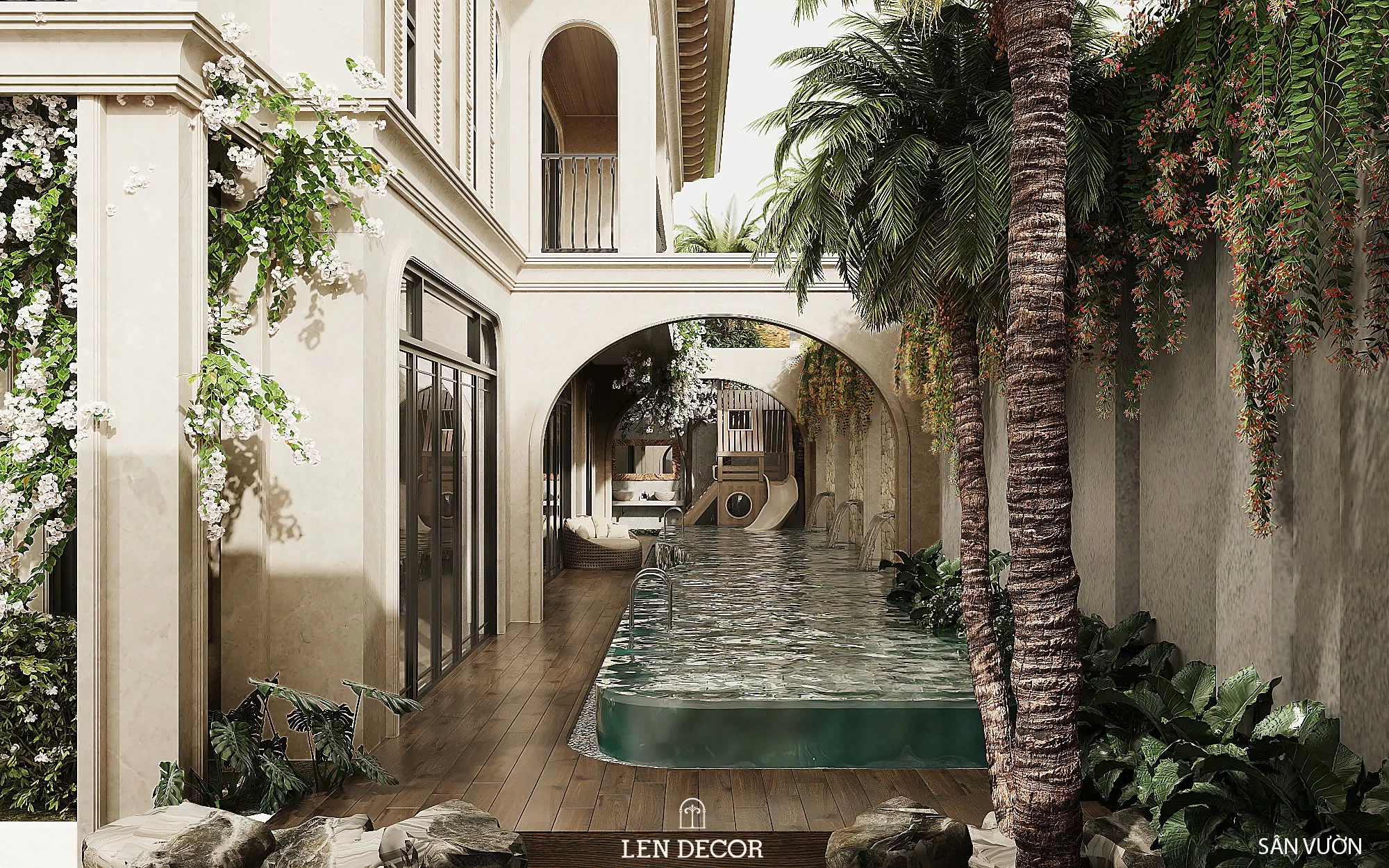 Nơi đây được 𝑳𝒆𝒏 𝑫𝒆𝒄𝒐𝒓 thiết kế để nhiều thế hệ cùng sinh sống, mỗi thành viên đều có sự riêng tư và trải nghiệm phù hợp. Người lớn tận hưởng sự tĩnh tại trong những căn phòng sử dụng chất liệu gỗ và ánh sáng ấm áp. Còn trẻ thơ được thỏa sức khám phá với sân chơi, phòng ngủ và khu đọc sách giúp phát triển tư duy.